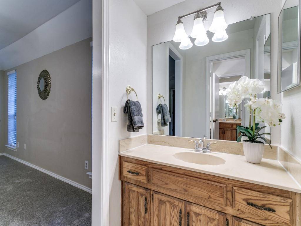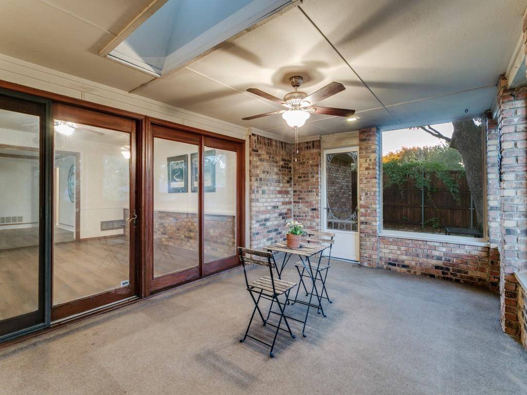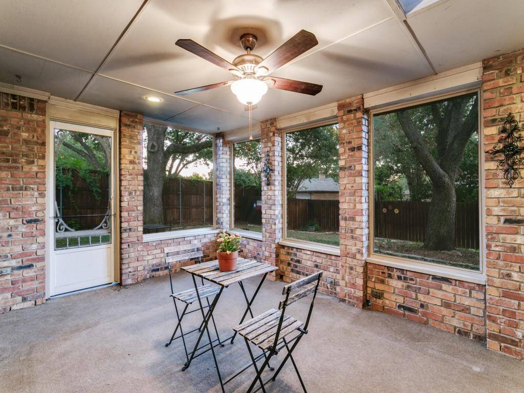 Wonderful 1-story home with beautiful mature oak trees! Prestigious Flower Mound address, quiet tree-lined street & large private wooded backyard! 3 BR, 2 Baths, 2 Living Areas. Laminate wood floors, fresh carpet & neutral paint! Spacious Family Room with brick fireplace & built-in bookshelves! 2nd Living area makes a fun Game Room or Home Office with window walls opening out to screened-in Porch! Makes a cozy spot for your morning coffee! Kitchen has stainless steel appliances, pantry, appliance garage, ample cabinet space & opens to a bright Breakfast Area! Dining Room has original corner built-in hutch! Primary Bedroom has ensuite bath with 2 separate sinks-vanities, 2 walk-in closets & a 3rd Bonus vanity space! Laundry Rm has built-in cabinets, a window for natural light & even space to add a mudroom bench! Extra-deep 2 car garage. Lockable 10x14 Storage Shed. Full sprinkler system. Artificial turf in backyard for easy maintenance. NO popcorn ceilings! Walking distance to neighborhood park! Desirable Flower Mound schools! Roof, HVAC & water heater replaced in 2024. Ready for you to make it your HOME!