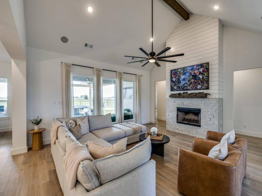 This stunning luxury country estate features 4 bedrooms, a large office, and 2 living areas, on 1.75 acres. The home was custom-built with exceptional finishes. The home boasts wide plank wood floors in all of the living and dining spaces, as well as the Primary bedroom. One-owner home that was built for comfortable and sophisticated living. The expansive kitchen is equipped with a gas cooktop, double ovens, a large island, and a breakfast bar. Beautiful lighting adds elegance throughout the space. The spacious family room features a vaulted ceiling with a beam and floor to ceiling wood burning fireplace.The large windows throughout the home provide an abundance of natural light. Every bedroom includes its own ensuite bathroom. The primary bedroom has a luxurious ensuite bathroom with dual vanities, a porcelain soaking tub, a large walk-in shower and a spacious custom closet that opens up to the laundry room. This 19x7 laundry room has great storage, plus a sink and space for an extra fridge. The second living room is upstairs