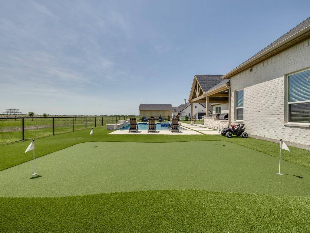 We can't wait to show you this AMAZING backyard- made for entertaining and family parties. You have to experience it, rather than rely on 1-dimensional photos. COME SEE! The spacious outdoor living area features a built-in smoker, grill, and griddle and eating bar. The vaulted ceiling has stained shiplap with a built-in sophisticated sound system. The stunning pool, spa and putting green were added less than 2 years ago.