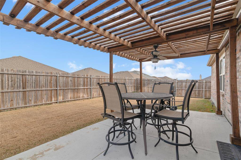 Welcome home to this inviting one story, 3 bedroom, 2 bath home located in the Paloma Creek South community. Designed with an open floor plan, this home offers two living areas, providing flexible space for entertaining, a home office, or a second lounge. The main living spaces feature durable LVP flooring, while carpeted bedrooms and a front living area add comfort and warmth. The light and bright kitchen is the heart of the home, complete with an island, breakfast bar, and a dining area that flows seamlessly into the main living space making it perfect for everyday living and gatherings. Enjoy the privacy of a split bedroom layout, with a spacious primary suite with ensuite bath set apart from the secondary bedrooms. Step outside to relax or entertain under the covered back patio with a pergola and ceiling fan, ideal for enjoying outdoor living year round. Residents of Paloma Creek South enjoy an abundance of community amenities, including multiple pools, fitness centers, and scenic walking paths. This home offers comfort, functionality, and a lifestyle you'll love, don't miss it!