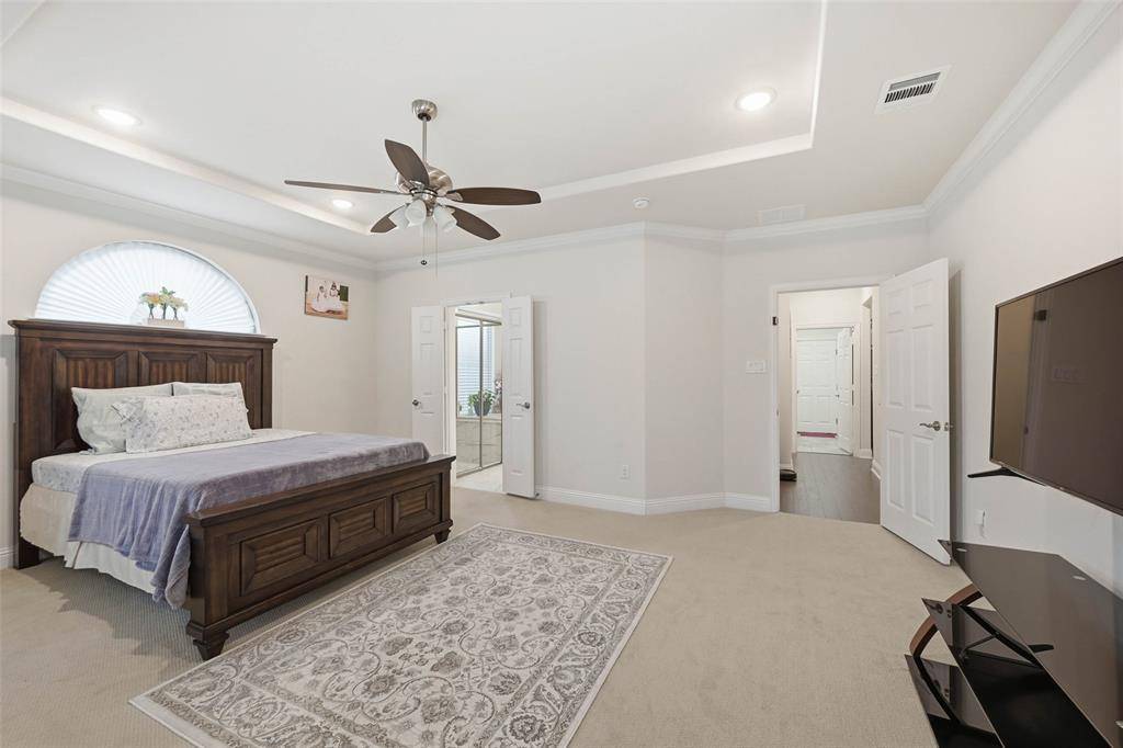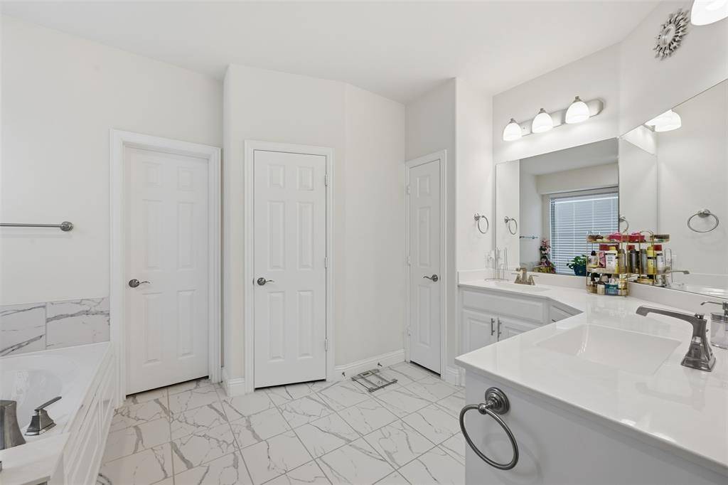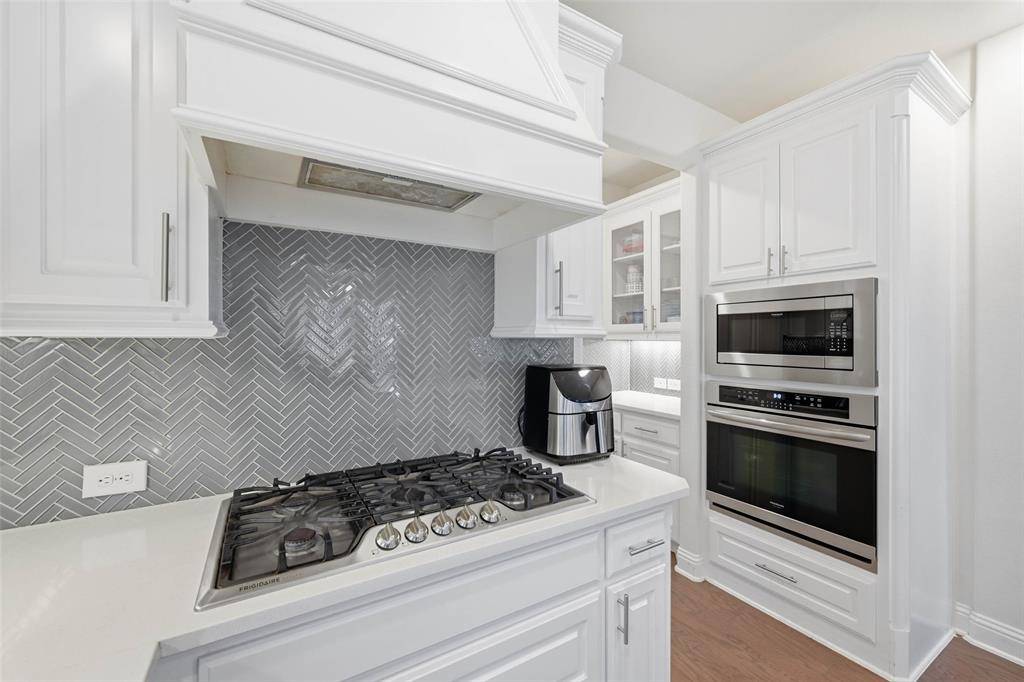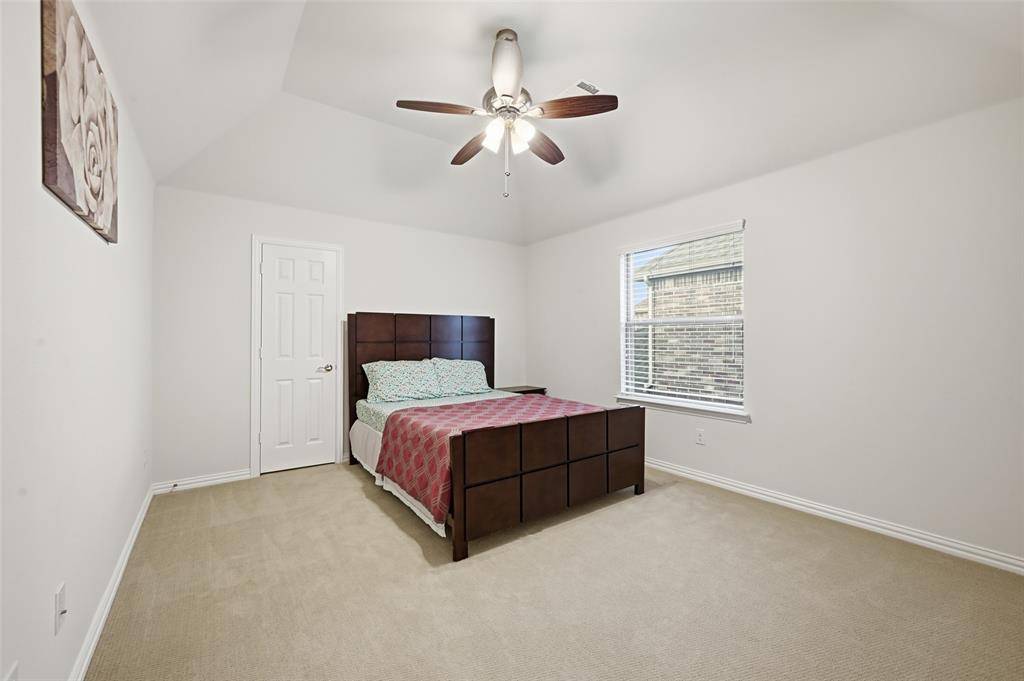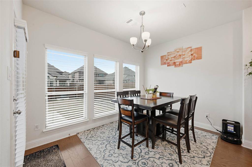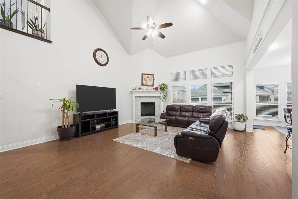 Beautiful Home in the Heart of Frisco's popular Collinsbrook Farms subdivision with highly sought after Prosper Schools. This thoughtfully designed 5-bedroom 4-bath PLUS Study home boasts a spacious & open floor plan that maximizes natural light and creates an inviting atmosphere for both daily living and entertaining. Home features a charming front porch, grand 2-story foyer, beautiful wooden floor throughout all living areas, elegant chandeliers & window treatments. A dramatic staircase with wrought-iron spindles sets the tone for the home's refined aesthetic, while the split formal living and dining areas offer flexible space for gatherings. The spacious study can easily serve as a 2nd bedroom with a full bath downstairs, providing convenience. The expansive family room, open to the second floor, creates an airy and inviting atmosphere. The elegant Kitchen boasts center island, beautiful quartz countertops, ceramic tile backsplash, sparkling white cabinets, stacked SS appliances, 5 burner gas cooktop, wood range hood and butler's pantry. The large primary suite is truly a retreat, featuring a wall of windows, step ceiling, ensuite bath with dual vanities, separate shower, garden tub & spacious walk-in closet. The Large Game Room upstairs will play host to many competitive family game nights while the Media Room with lofted ceiling & equipment pre-wiring promises the ultimate movie experience. Large backyard with an extended concrete patio & newly stained fence is perfect for gardening & relaxation. This amazing community offers amenities such as community pool, playground, fishing pond providing endless opportunities for recreation.