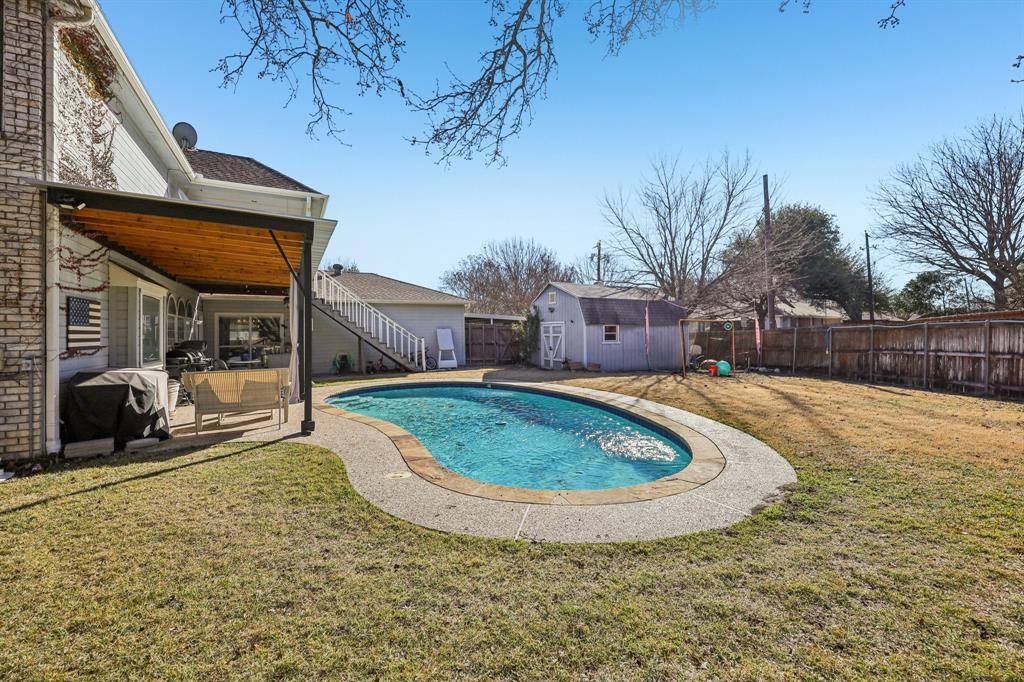 Step outside to enjoy a covered patio overlooking a sparkling pool and large backyard, offering plenty of room for play, entertaining, or outdoor relaxation. This home combines comfort, functionality, and resort-style living in one exceptional package.