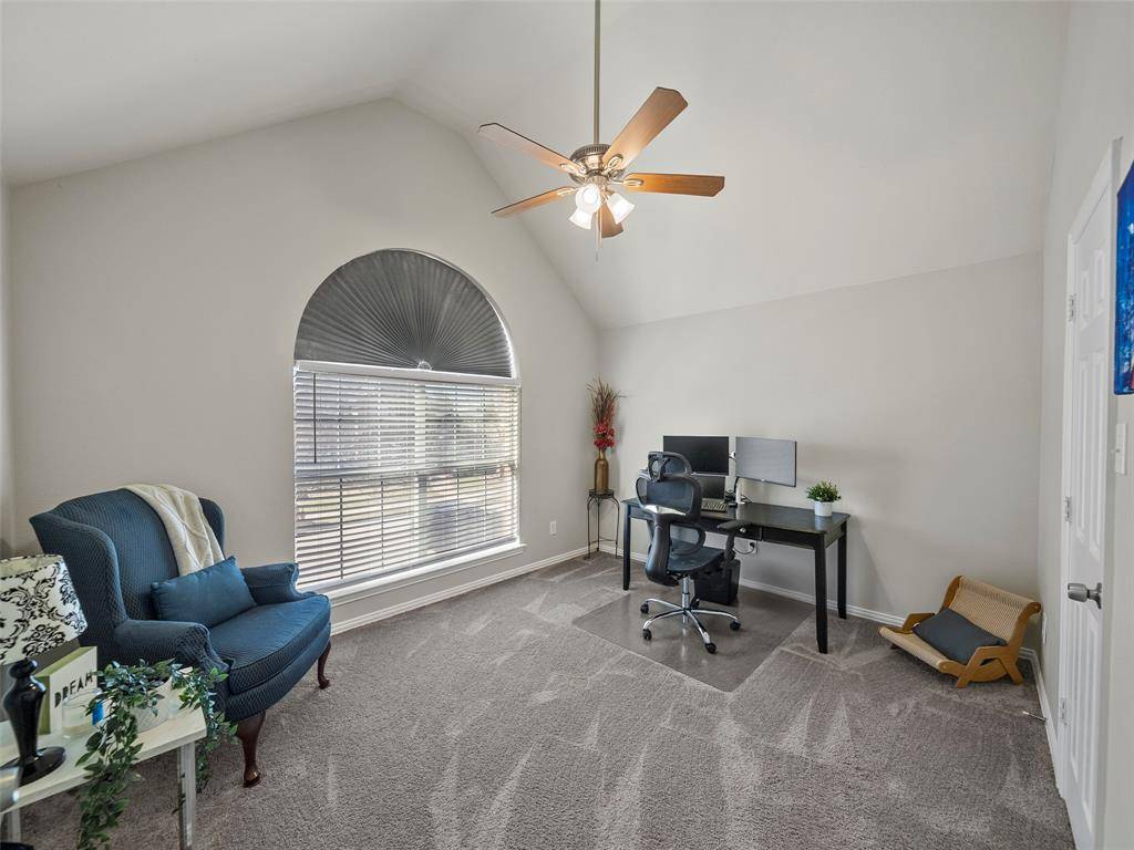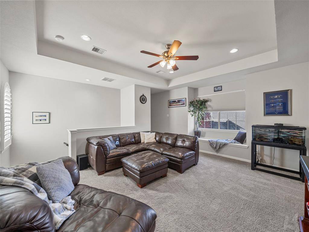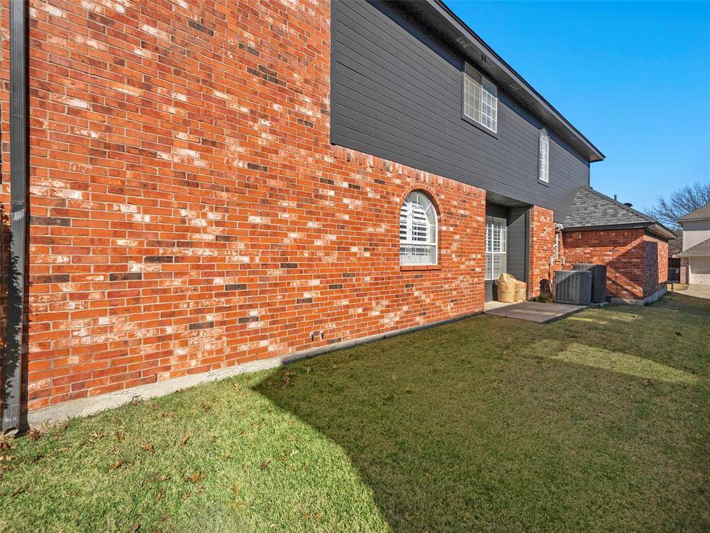 Beautiful and well-maintained home with numerous updates completed, including a high-efficiency AC and furnace installed 2022, roof replacement 2023, kitchen appliances 2021, an upstairs bathroom renovation completed 2023, new flooring throughout the downstairs and stairs in 2023, a fireplace hearth update in December 2023, plantation shutters, front and rear exterior doors replaced, exterior paint completed 2025, and a primary shower update in 2026.The home features granite countertops, energy-efficient upgrades such as a 16-SEER AC, radiant barrier, newer windows, and attic storage. Dual staircases provide functional flow and architectural interest. The front of the home offers abundant natural light, while stacked formal living and dining spaces create a flexible layout for entertaining. Built-in shelving, tray ceilings, and a fireplace add character throughout. The upstairs living area includes a window alcove that adds charm and flexibility to the space. The primary bedroom features a bay window that enhances natural light, along with a spacious bath offering a jetted tub, dual sinks, and an updated shower. Outdoor living is ideal for entertaining with generous concrete decking around the pool, offering ample space for seating and BBQs. An outdoor shed provides additional storage. Conveniently located near shopping, dining, and entertainment.