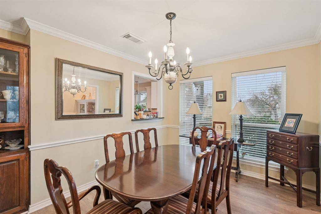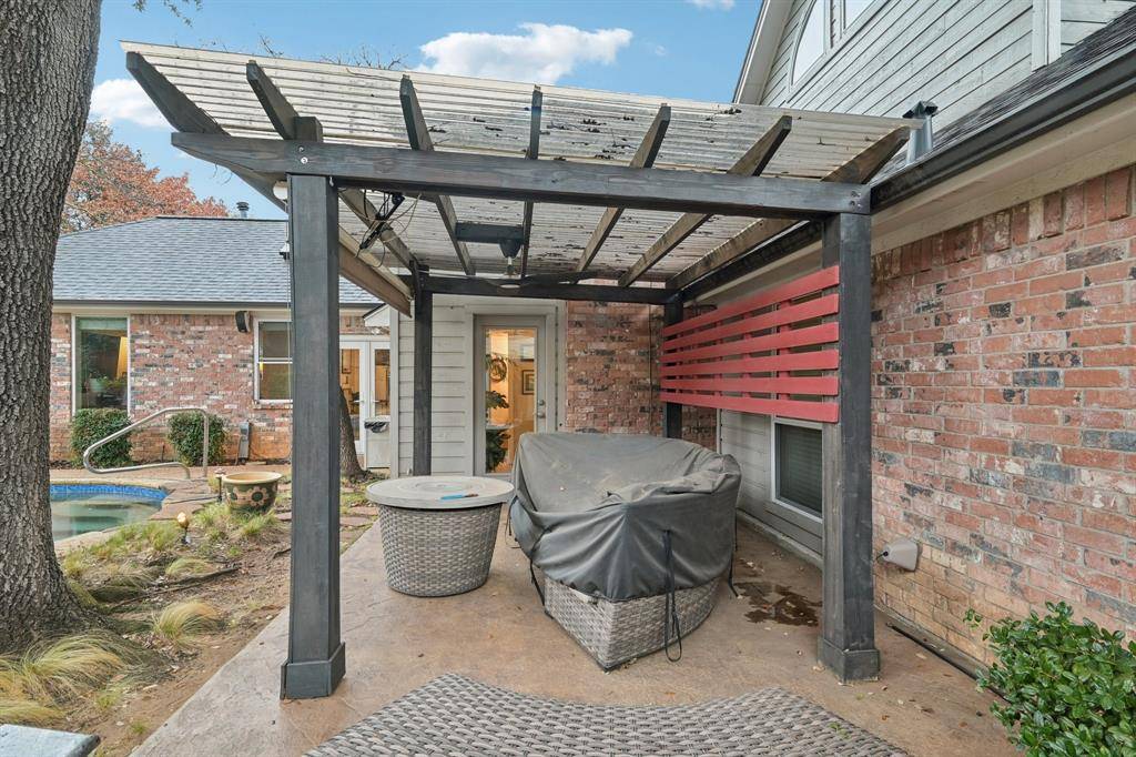Situated on a private, tree filled corner lot in Grapevine, this beautifully designed home offers exceptional indoor and outdoor living. The landscaped backyard feels like a true oasis, featuring a saltwater pool with diving board, pergola with fire pit and seating, perfect for relaxing or entertaining.