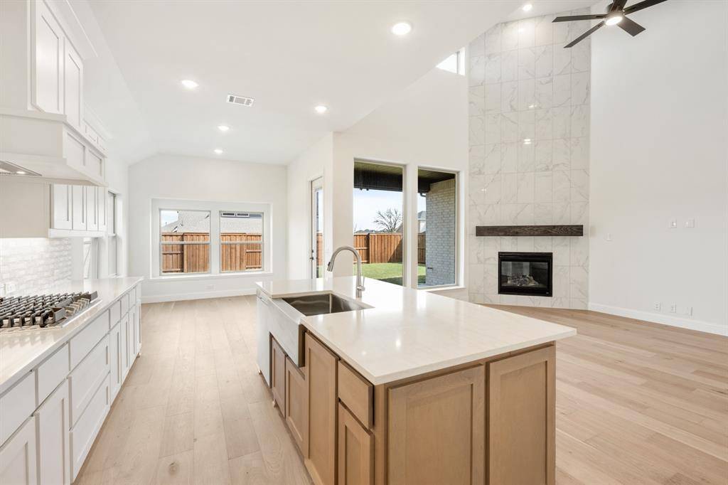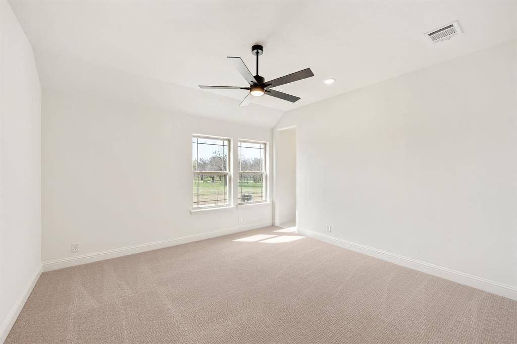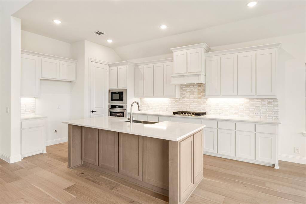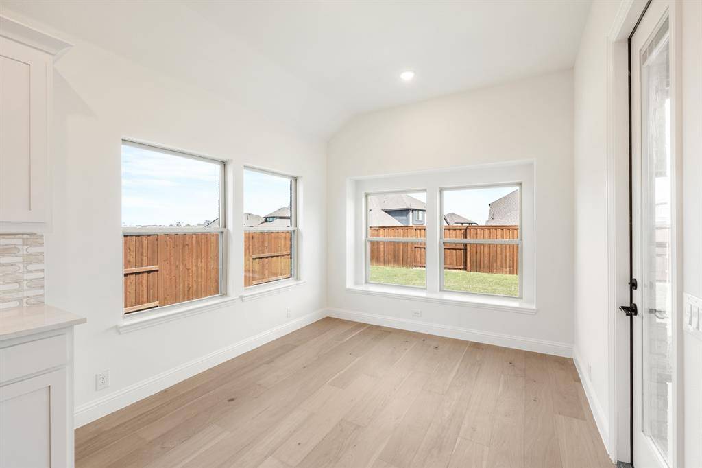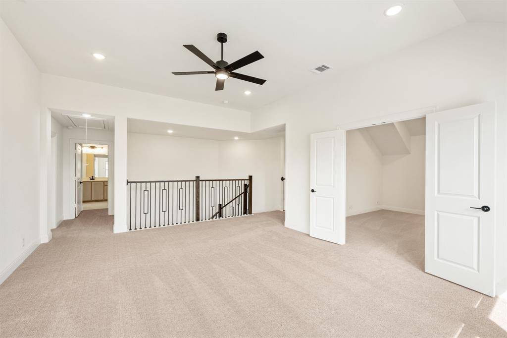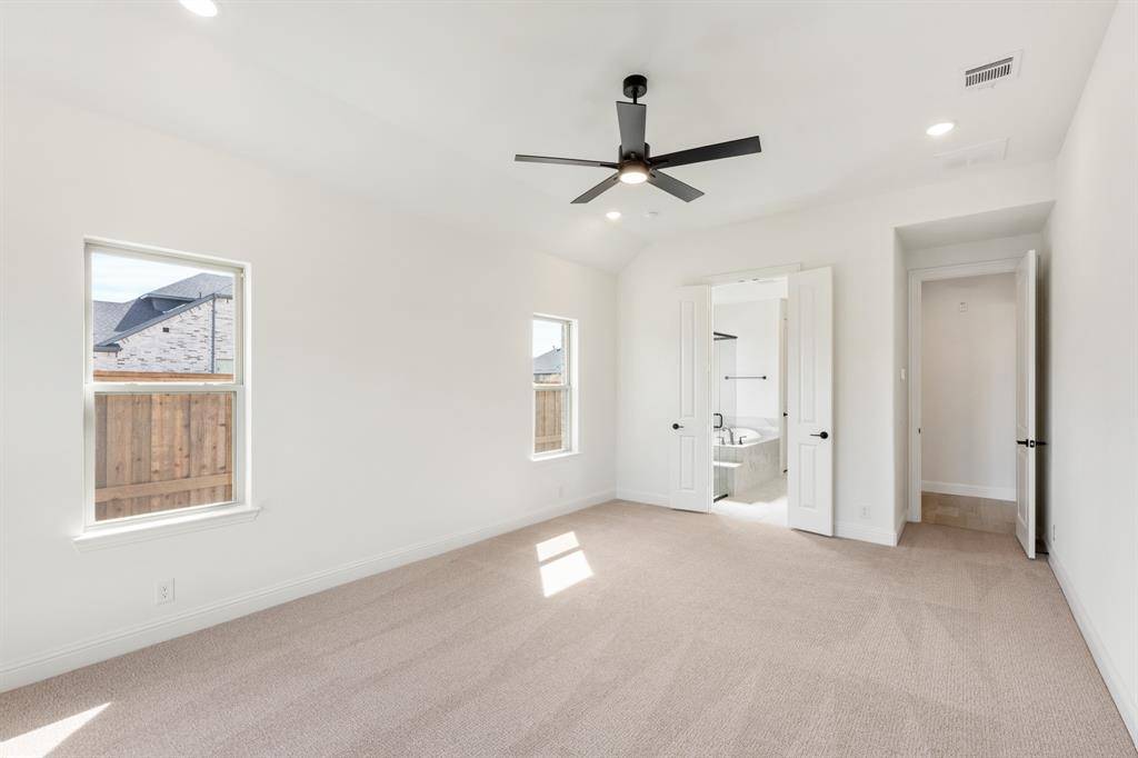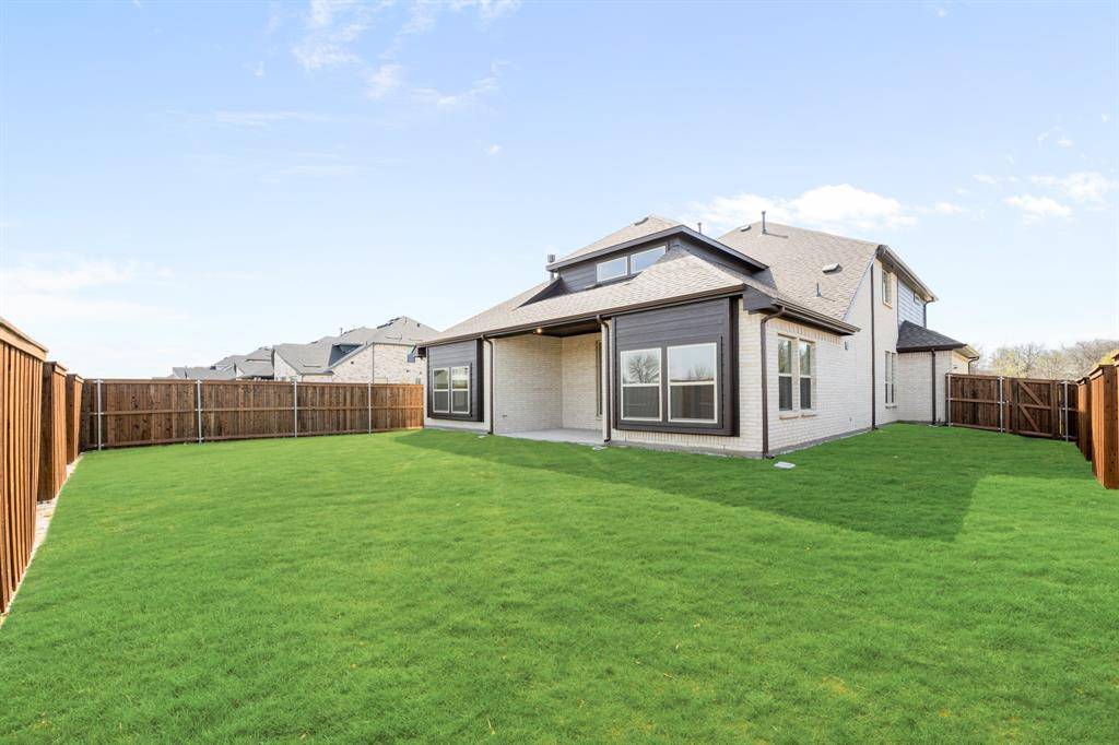 NEW! NEVER LIVED IN. Move-In Ready! Everything buyer's look for is here in this 5 bedroom, 4 bath Rose II plan from Bloomfield Homes, located in amenity-rich Windsong Ranch zoned to Prosper ISD. Corner, Cul-de-Sac homesite that looks across to Ethridge neighborhood park, has nearby trails, and only a couple blocks from The Bridge and The Courthouse (2 of the 4 amenity centers)! Open and bright, this transitional home has soaring ceilings - including a double-height family room lined with picture windows and modern railing along the second floor outlook. We added custom upgrades and premium finishes to optimize every inch, from extra cabinets extended into the dining nook, doors added to the upstairs media room, a guest suite with a mud pan shower downstairs, and 8' interior doors throughout the first floor. On-trend color palette displays warm whites and creams contrasted with rich chocolate tones found inside and out. You can have ''the cute house on the corner'' thanks to the Winterstone white brick, white stone and Dark Granite trim paired with a stained wood garage door, uplights, and a contemporary 8' front door. Engineered Wood floors in Avalon Oak in most areas downstairs, while plush textured carpet was installed upstairs and in bedrooms. The Deluxe Kitchen comes equipped with gas cooking on a 5-burner range, wood vent hood, double ovens, matching stainless farmhouse sink, marble capsule mosaic backsplash, and undercabinet lighting. White cabinets sit against the walls, but the island is a light wood stain for a natural accent - a look carried throughout the home topped by a variety of high-level quartz! Extensive list of upgrades also includes a polished tile-to-ceiling fireplace, glass French doors to the Study, large downstairs Primary Suite with both a deck mount tub and separate shower, generous mud-laundry room, storage space in the 2.5-car garage, covered rear patio with a gas drop and MUCH MORE! Call Bloomfield Homes to learn more or come tour today.