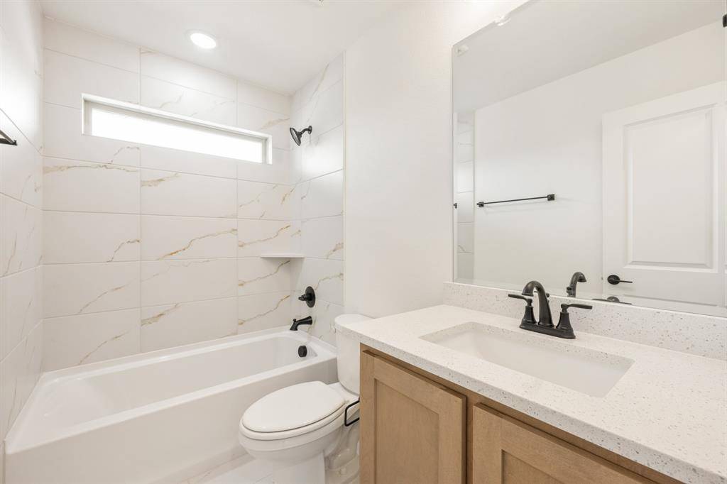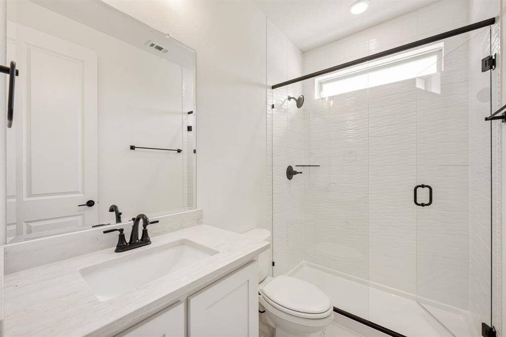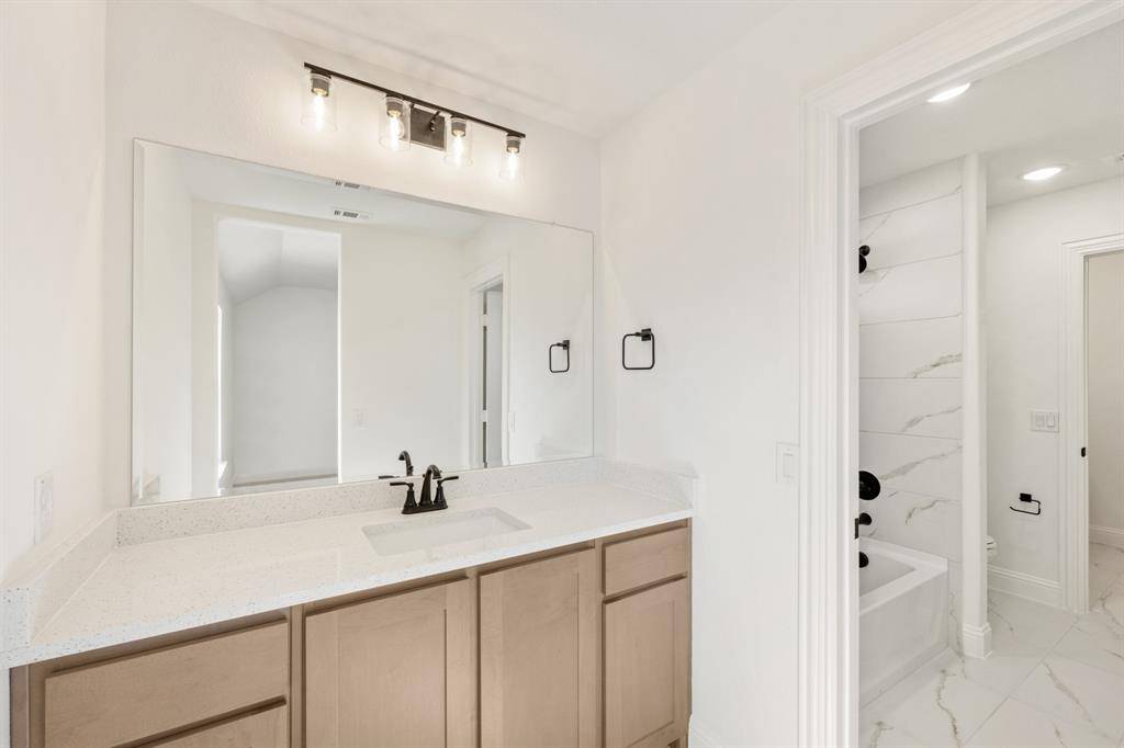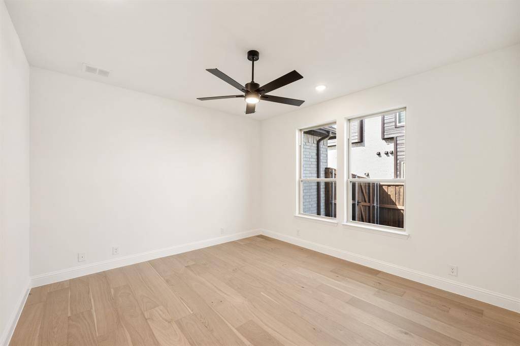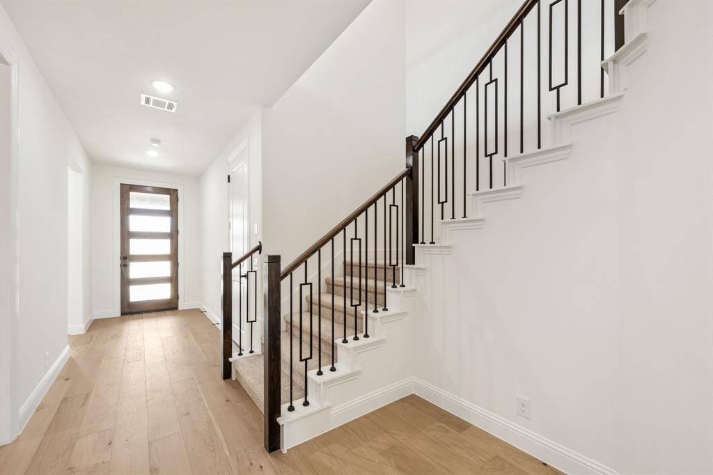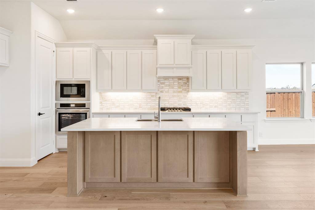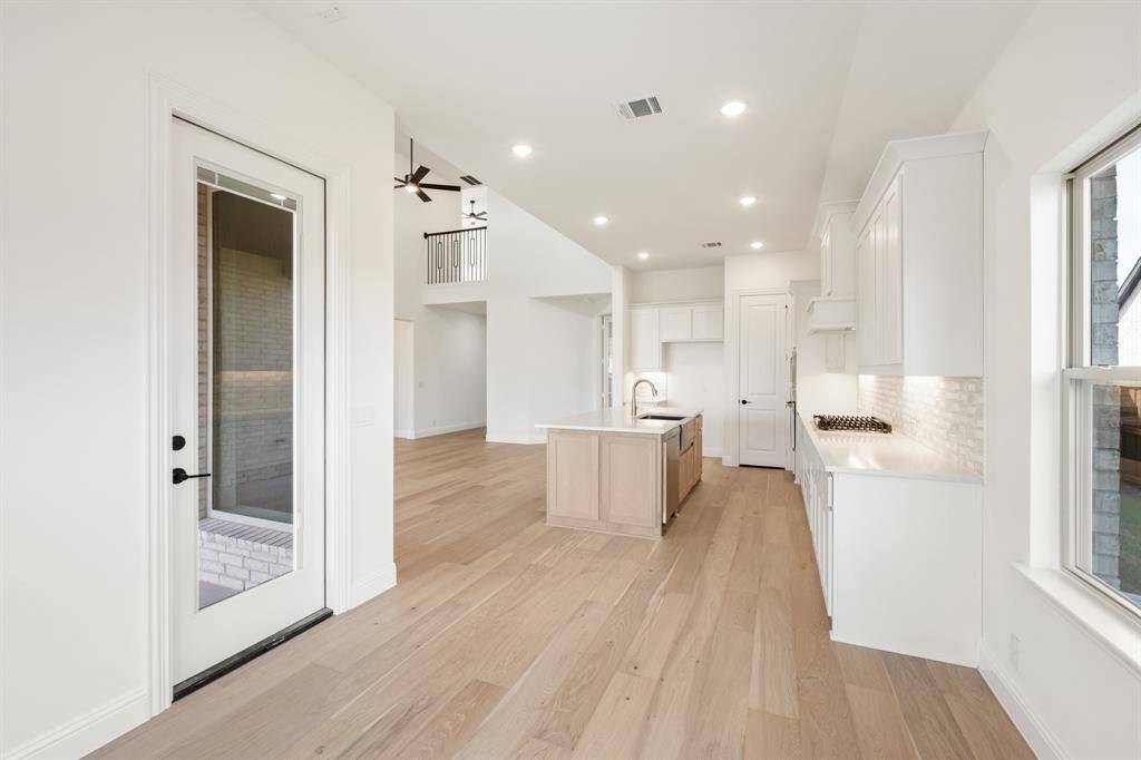 NEW! NEVER LIVED IN. Move-In Ready! Everything buyer's look for is here in this 5 bedroom, 4 bath Rose II plan from Bloomfield Homes, located in amenity-rich Windsong Ranch zoned to Prosper ISD. Corner, Cul-de-Sac homesite that looks across to Ethridge neighborhood park, has nearby trails, and only a couple blocks from The Bridge and The Courthouse (2 of the 4 amenity centers)! Open and bright, this transitional home has soaring ceilings - including a double-height family room lined with picture windows and modern railing along the second floor outlook. We added custom upgrades and premium finishes to optimize every inch, from extra cabinets extended into the dining nook, doors added to the upstairs media room, a guest suite with a mud pan shower downstairs, and 8' interior doors throughout the first floor. On-trend color palette displays warm whites and creams contrasted with rich chocolate tones found inside and out. You can have ''the cute house on the corner'' thanks to the Winterstone white brick, white stone and Dark Granite trim paired with a stained wood garage door, uplights, and a contemporary 8' front door. Engineered Wood floors in Avalon Oak in most areas downstairs, while plush textured carpet was installed upstairs and in bedrooms. The Deluxe Kitchen comes equipped with gas cooking on a 5-burner range, wood vent hood, double ovens, matching stainless farmhouse sink, marble capsule mosaic backsplash, and undercabinet lighting. White cabinets sit against the walls, but the island is a light wood stain for a natural accent - a look carried throughout the home topped by a variety of high-level quartz! Extensive list of upgrades also includes a polished tile-to-ceiling fireplace, glass French doors to the Study, large downstairs Primary Suite with both a deck mount tub and separate shower, generous mud-laundry room, storage space in the 2.5-car garage, covered rear patio with a gas drop and MUCH MORE! Call Bloomfield Homes to learn more or come tour today.