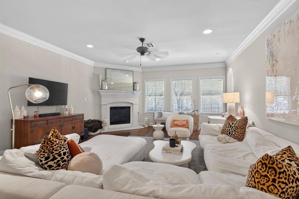 Stunning second floor condo with luxury updates. WATER, GAS AND TRASH INCLUDED with this luxury 3 bedroom condo. Complete with hardwood floors, comes equipped with Stainless Steel kitchen appliance suite including Refrigerator and full size washer and dryer in utility room. Fireplace in living room. Split floor plan, open kitchen granite countertops, crown molding throughout. Gated garage (2 assigned spaces), elevator in building, interior courtyard. This unit also has a spacious outdoor balcony.