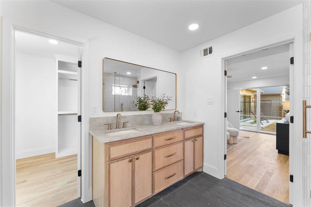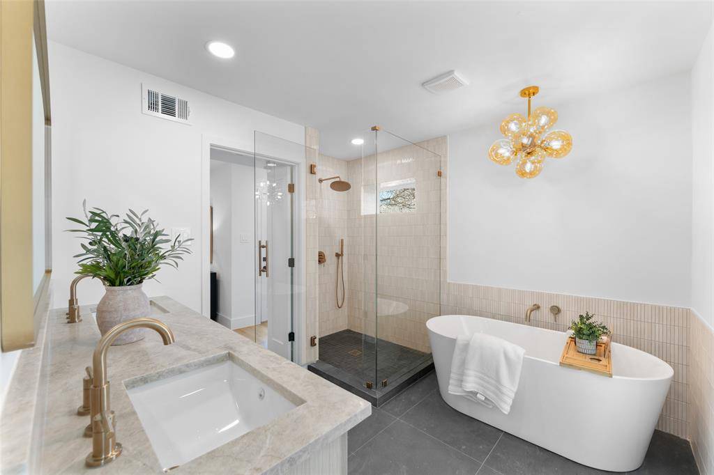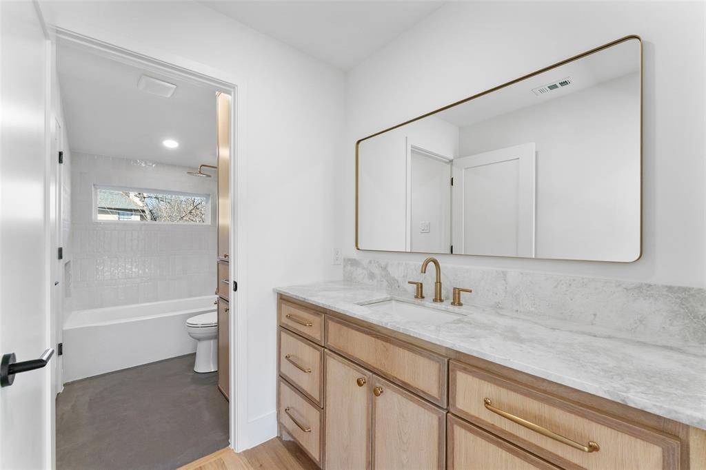 Discover over 3,500 square feet of beautifully reimagined living in one of University Park's most desirable neighborhoods. This 5-bedroom, 4.5-bath features two primary suites—one conveniently located on the first level and a second upstairs, offering flexibility for guests or multi-generational living. Taken down to the studs and completely rebuilt, delivering the feel of new construction while preserving its classic traditional exterior and timeless style. Zoned to HPISD, including Armstrong Elementary School, the home offers both exceptional convenience and refined living.