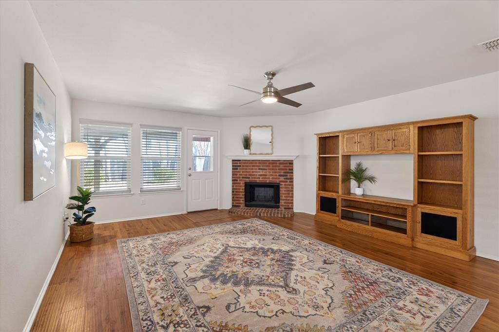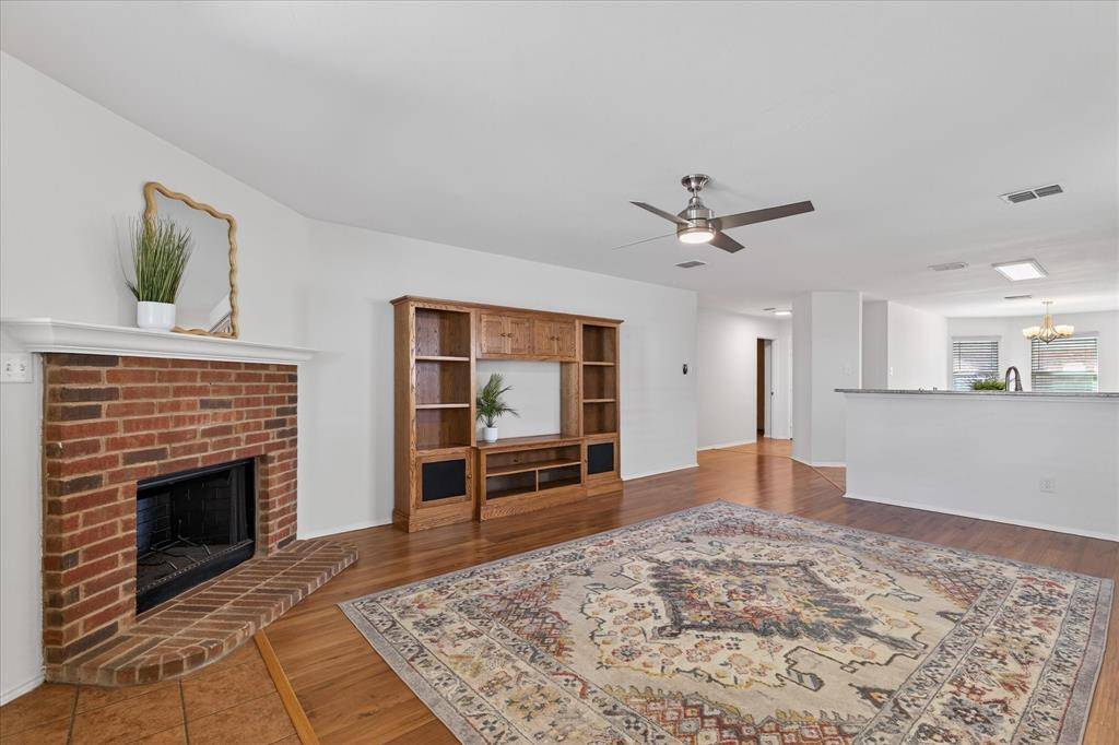 WELCOME TO THIS ADORABLE QUAINT 3 BEDROOM, 2 BATH SINGLE STORY HOME IN LITTLE ELM! THIS HOME HAS BEEN METICULOUSLY MAINTAINED AND IS READY FOR ITS NEW OWNERS! THIS HOME HAS AN OPEN FLOOR PLAN WITH WOOD FLOORS AND UPDATED KITCHEN. KITCHEN HAS GRANTIE, UPGRADED BACKSPLASH, KITCHEN ISLAND AND AN ABUNDANCE OF CABINET SPACE COMPLETE WITH CUSTOM PULL OUT DRAWERS. PRIMARY BEDROOM WITH EN SUITE BATHROOM WITH LARGE WALK IN CLOSET. NICE SIZE SECONDARY BEDROOMS WITH AMPLE CLOSET SPACE. THE SPACIOUS FAMILY ROOM WITH BRICK FIREPLACE OVERLOOKS THE BEAUTIFUL TEXAS SIZED BACKYARD WITH TALL TREES. SIT ON YOUR COVERED PATIO AND ENJOY THE BREEZY NIGHTS. WALKING DISTANCE TO LITTLE ELM HIGH SCHOOL. CLOSE PROXIMITY TO LAKE LEWISVILLE, LITTLE ELM BEACH AND LOTS OF SHOPPING AND DINING!