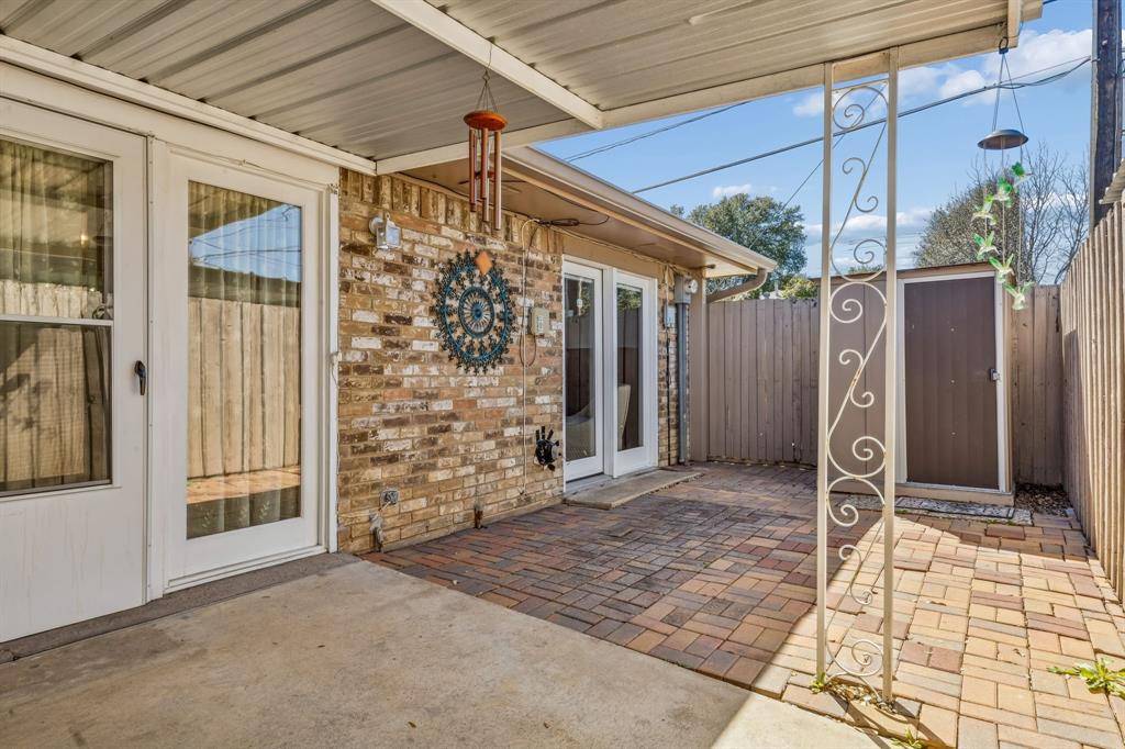 Located in the desirable Pagewood Townhomes community, this one-level corner residence reflects true pride of ownership and offers comfort, convenience, and low-maintenance living in a convenient Dallas location. With 2 bedrooms and 1,210 square feet, the corner end-unit placement, with only one shared wall, enhances the home's sense of privacy and comfort. Open living and dining areas create an inviting layout that feels comfortable, connected, and easy to live in. The living room features engineered wood flooring throughout, built-in shelving, a fireplace, and a ceiling fan for added comfort. The kitchen is thoughtfully updated with granite countertops, a gas range, updated cabinetry with additional built-in cabinetry in the breakfast nook, and doors leading directly to the private fenced patio for easy indoor-outdoor flow. A convenient full-size laundry closet is located just off the dining space. Spacious Primary suite offers updated cabinetry, a tub-shower combination, and a walk-in closet located off the bath. The spacious secondary bedroom includes real wood built-in shelving and a desk, along with direct access to the patio. The secondary bath features a stand-up shower and generous counter space.Outside, the private fenced patio is a standout feature, with two assigned covered parking spaces located just outside the patio gate within a gated and secured parking area with automatic gate access. he HOA includes exterior and grounds maintenance plus access to the community pool and tennis courts. Ideally situated near Preston Royal, Preston Forest, NorthPark Center, Medical City, and nearby access points to the Northaven Trail. Convenient access to US-75 and LBJ (635) makes commuting easy, with quick access to Downtown Dallas, shopping, dining, and major medical centers