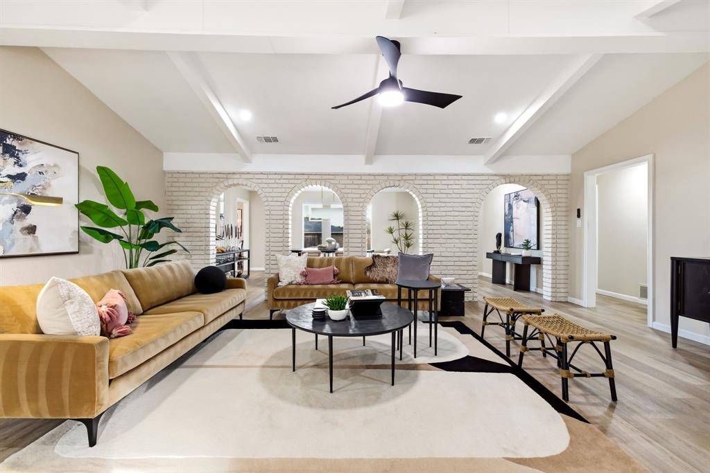 Welcome to 2341 Monticello Cir, a beautifully renovated gem in a highly sought-after area of Plano! This traditional-style home exudes charm and elegance positioned perfectly at the end of a serene circle street. As you enter, you'll be captivated by the unique curved fireplace, a striking focal point that sets the tone for the home's inviting ambiance. The spacious dining and living areas are gracefully separated by classic brick arches, creating a seamless flow that's perfect for entertaining or simply relaxing. Kitchen is a culinary dream, featuring a large island with butcher block countertops, updated cabinets with quartz countertops, and stylish tile backsplash, with ample storage and modern amenities. The flexible floor plan accommodates a variety of lifestyles. The primary suite is a luxurious retreat, complete with a soaking tub, walk-in shower, double vanity, and a spacious walk-in closet. This home has been renovated to the nines, ensuring modern comforts and timeless style.