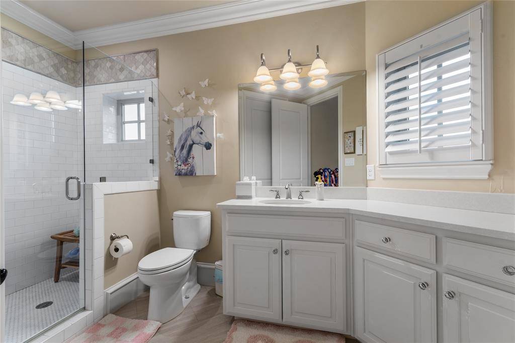 Situated on an acre in the prestigious community of Tranquility Farms and zoned to highly acclaimed Lovejoy ISD, this exceptional luxury estate offers a perfect blend of elegance, comfort, and functionality. The home welcomes you with grand architectural details, soaring ceilings, and expansive living spaces filled with natural light. Designed for both everyday living and entertaining, the open-concept layout flows effortlessly between the main living areas and a gourmet kitchen equipped with high-end appliances, double dishwasher, custom cabinetry, generous counter space, and an oversized island ideal for gathering. The private primary suite serves as a serene retreat with a spa-inspired bathroom and spacious walk-in closet, while additional bedrooms provide comfortable accommodations for family and guests along with two laundry rooms(one downstairs and one upstairs). Multiple living and entertaining areas throughout the home offer flexibility for work, relaxation, and hosting. Outdoors, the expansive property provides an amazing pool-spa oasis, full outdoor kitchen, a living space with a fireplace, beautiful green space and room to enjoy peaceful surroundings with plenty of privacy. Combining refined craftsmanship, thoughtful design, and a prime location close to shopping, dining, and major commuter routes, this home offers an elevated lifestyle in one of Fairview's most desirable communities.