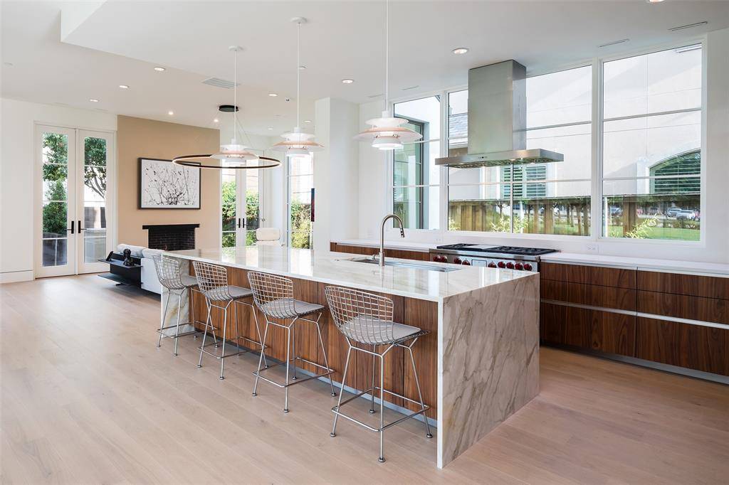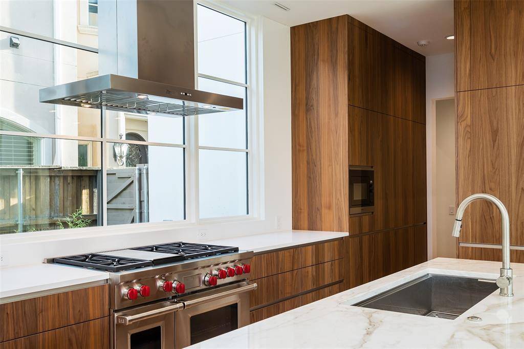 Stunning David Stocker (SHM) designed home with elevated finishes is perfectly positioned to overlook the SMU commissioned park in the hot Katy Trail Corridor of Highland Park. Described by Stocker as “an eternal gift from SMU”, this special location enjoys captivating views beyond the tree-lined park of the iconic gold domes of SMU's campus and Ford Stadium, creating a vibrant urban backdrop. Inside, the open kitchen, living, and dining space is flooded with natural light and framed by large glass doors that lead to a covered terrace overlooking the park. A turfed backyard with an outdoor cooking area makes entertaining effortless. Upstairs, the corner primary suite feels like a private retreat with serene views, a spa-inspired bath, and a custom walk-in closet. The second-floor living area or study offers a front-row perspective into SMU's Tennis Pavilion, perfect for watching competitive matches. Two additional ensuite bedrooms provide flexibility, with one conveniently located on the first level. A rare opportunity to lease a true modern masterpiece. The location is unmatched with an easy walk to the Katy Trail, Starbucks, and the dining and shopping along Mockingbird and the Knox–Travis corridor.