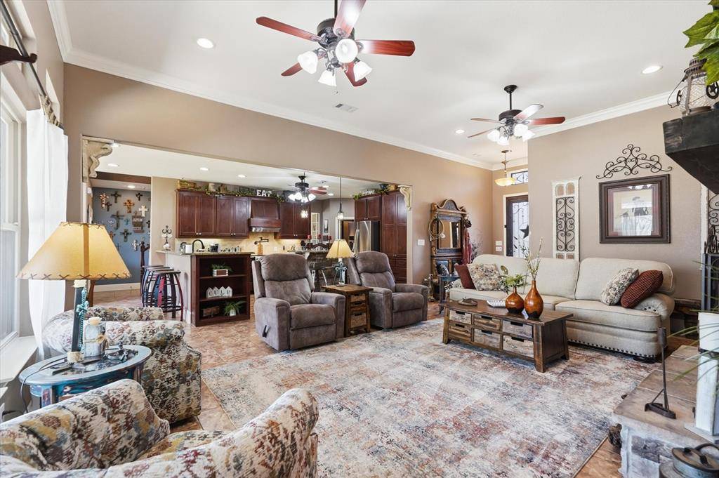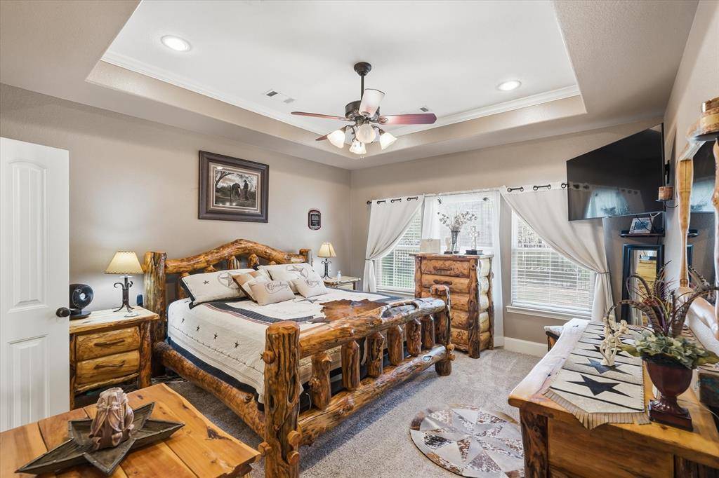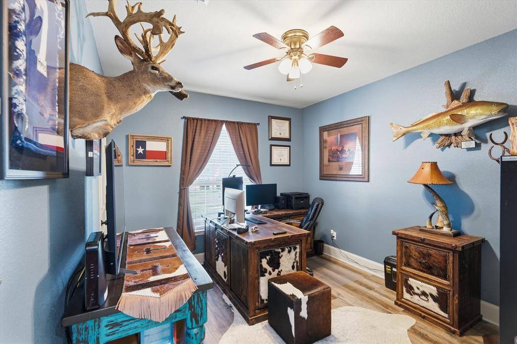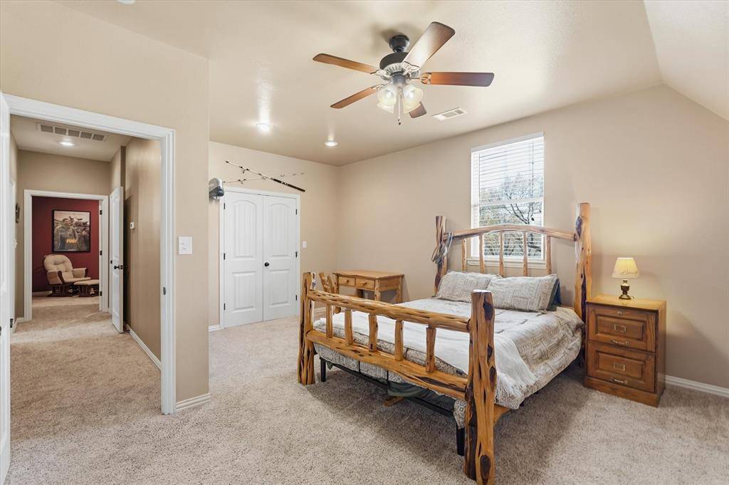 Nestled on a sprawling 1.48 acre lot, this beautifully upgraded home offers the perfect blend of space, comfort, and rustic style. Situated on a quiet cul-de-sac in the sought-after Hidden Lakes Ranch community just north of Gunter, this property provides a peaceful setting with room to roam. Extensively updated home featuring fresh interior paint, new carpet, and updated flooring in office. Spacious living room with stunning stone accent wall. Upgraded kitchen with vented hood, updated faucets, new garbage disposal, and appliances included (refrigerator with dual ice makers; oven with convection, air fryer, and warming drawer). Primary suite offers updated bath with new sinks and privacy glass shower. Jack-and-Jill bath upgraded with granite, backsplash, and tile flooring. Game room features upgraded woodwork, pool table conveys.