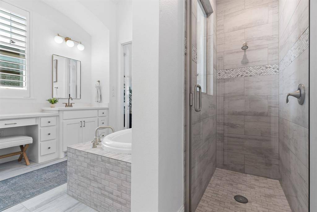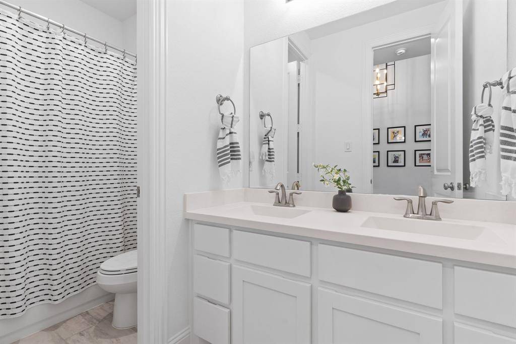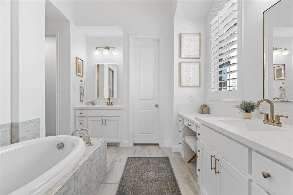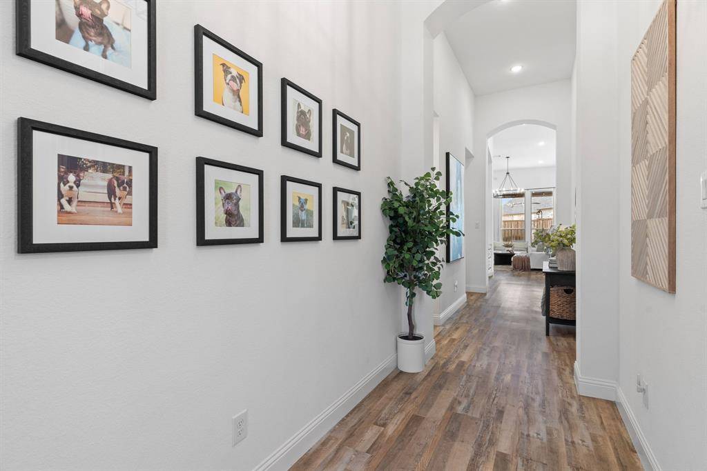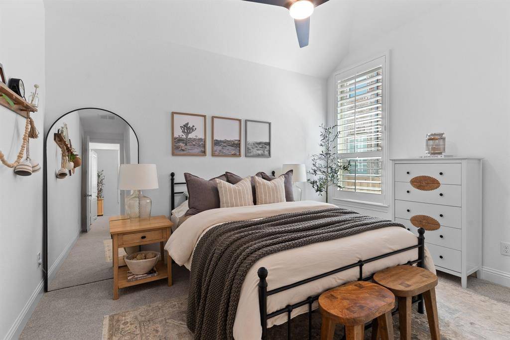 The private primary suite is a true retreat, featuring a cozy sitting area and a spa-like bath with dual vanities, a relaxing garden tub, separate walk-in shower, and an expansive walk-in closet. Two secondary bedrooms are thoughtfully split for privacy and share a well-appointed full bath with dual sinks. Enjoy resort-style living right at home with Star Trail's exceptional amenities, including sparkling pools, lighted tennis and pickleball courts, playgrounds, scenic parks, and miles of hike and bike trails. Ideally located near the Dallas North Tollway and just minutes from PGA Frisco, you'll have easy access to premier golf, shopping, dining, and entertainment.
