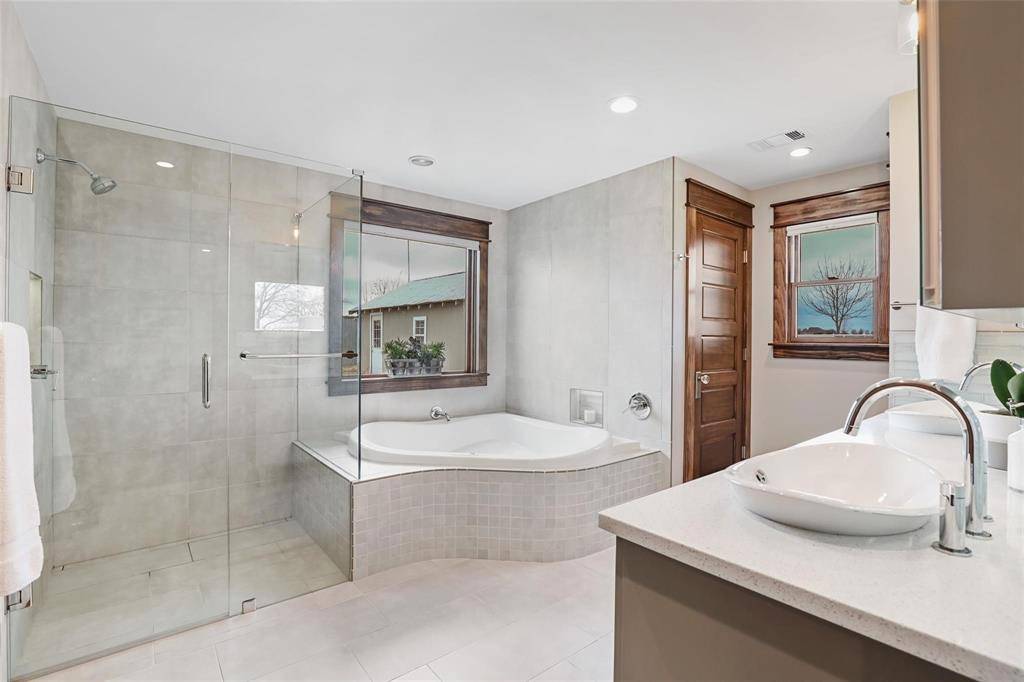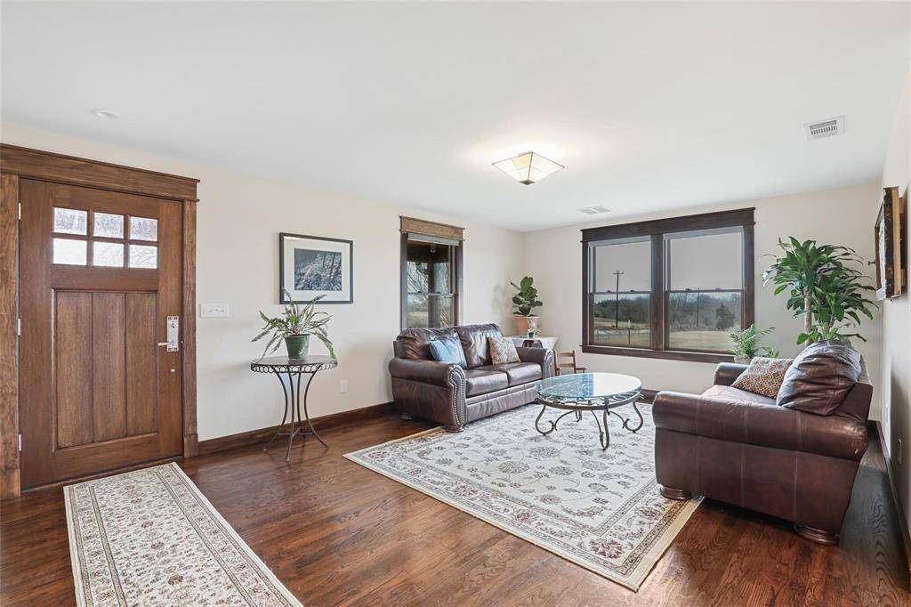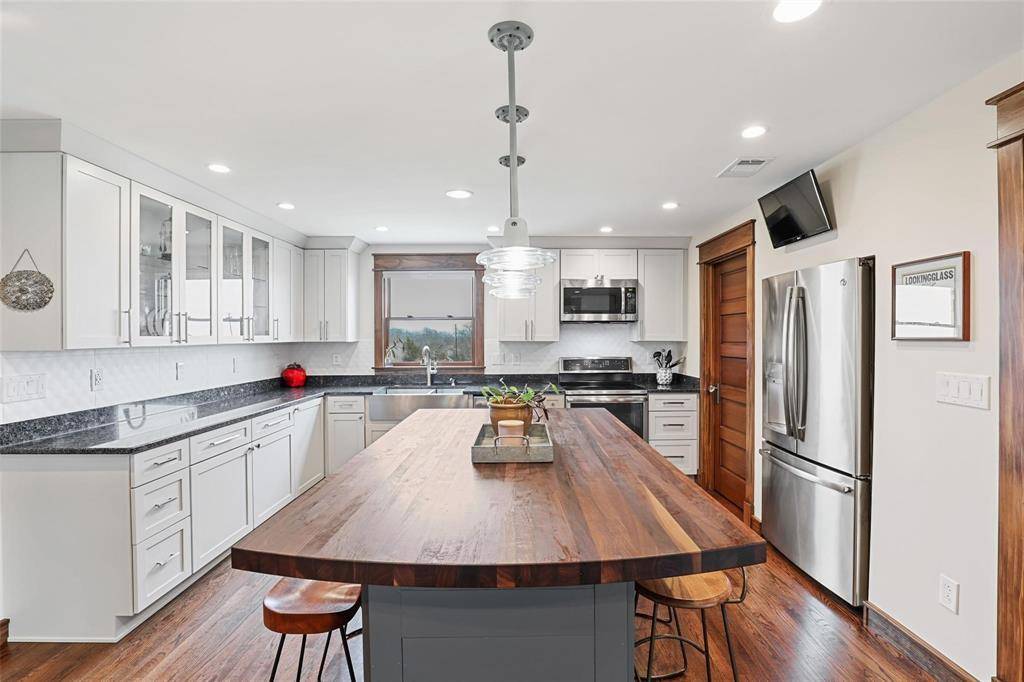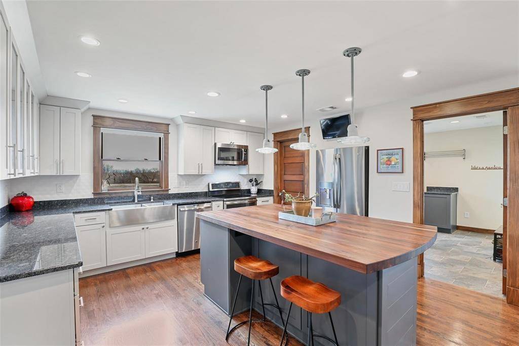 The custom farmhouse was completely rebuilt in 2019 with timeless style and modern efficiency. Inside, you'll find an open layout with oak floors, LED lighting, and handcrafted details throughout. The kitchen shines with solid maple cabinetry, granite countertops, a large island, and farmhouse sink. The primary suite offers a spa-inspired bath with radiant heated floors, air jet tub, oversized glass shower, and a spacious walk-in closet.