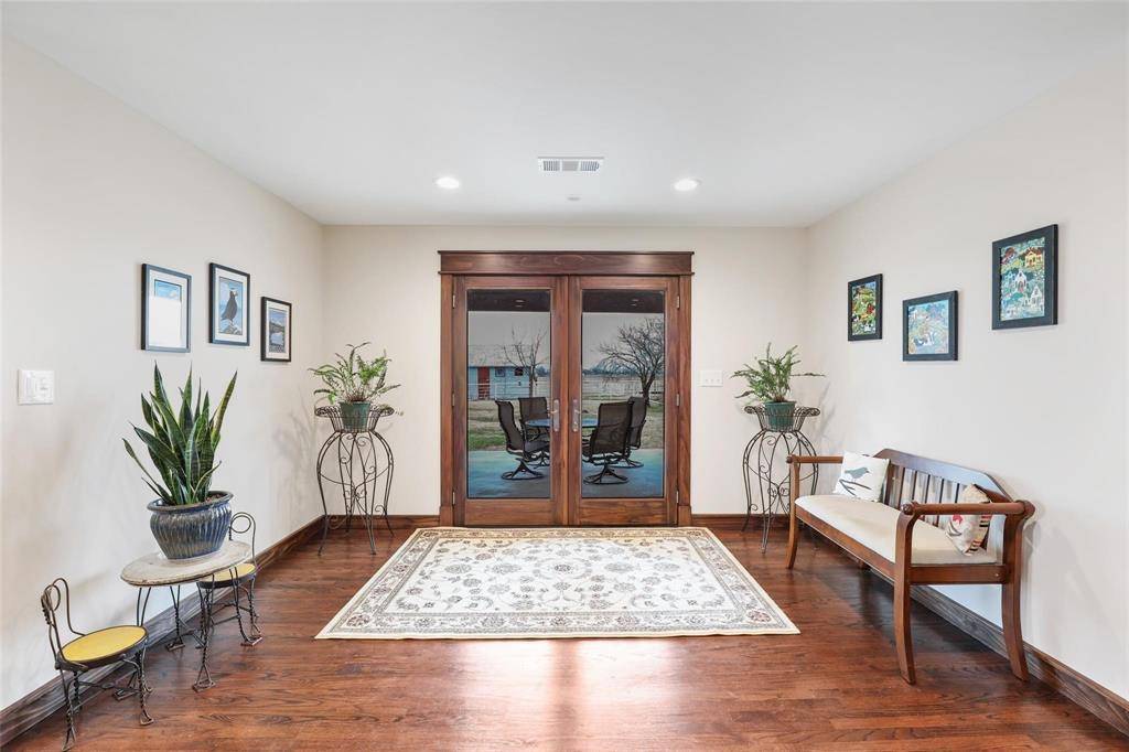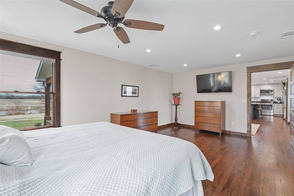 Experience peaceful country living on this beautifully appointed 12-acre ag-exempt ranch. Set among mature oaks and open pastures, this property offers a stocked pond, orchard, irrigated garden, barn with water and electricity, large equipment shed, carports, storm shelter, and pipe fencing with cross-fenced pastures for horses or cattle.