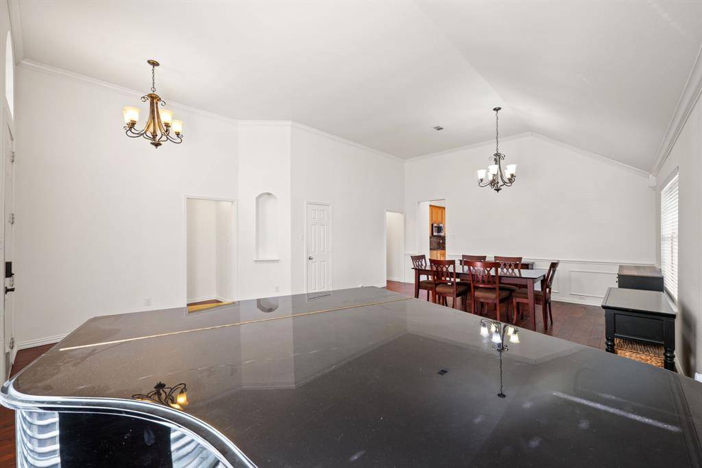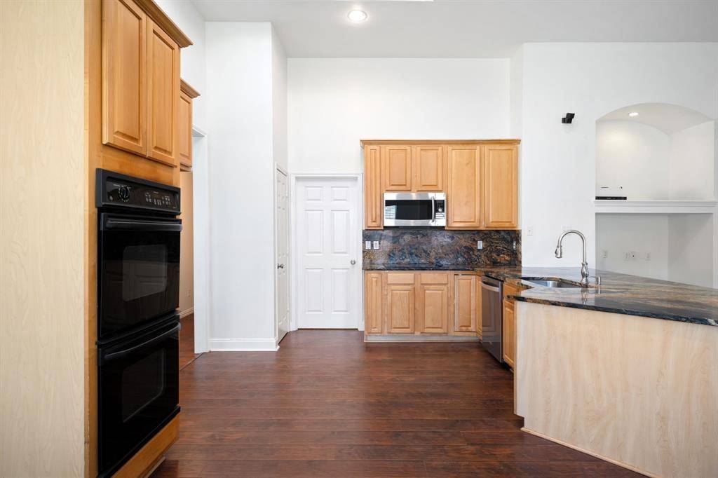 Welcome to this well-maintained home on a desirable corner lot in a highly sought-after, family-friendly neighborhood in Allen. Featuring an open-concept layout with soaring high ceilings, this home offers a functional and inviting space perfect for everyday living and entertaining. The kitchen is equipped with a double oven, extended granite countertops, providing ample prep space and great flow into the main living areas and breakfast room. Additional features include a wired speaker and entertainment system, adding convenience for hosting or relaxing at home. Skylight in the kitchen brightens up the space with natural light. Step outside to a spacious backyard on a corner lot, ideal for outdoor enjoyment, gatherings, or future enhancements.