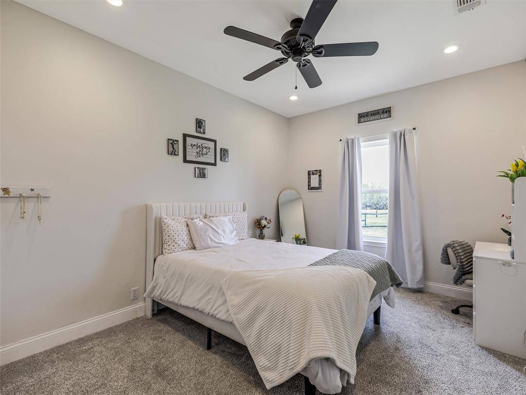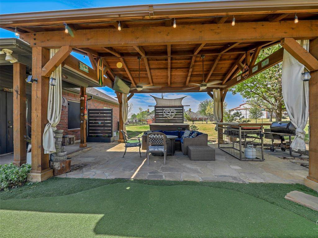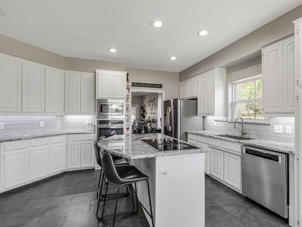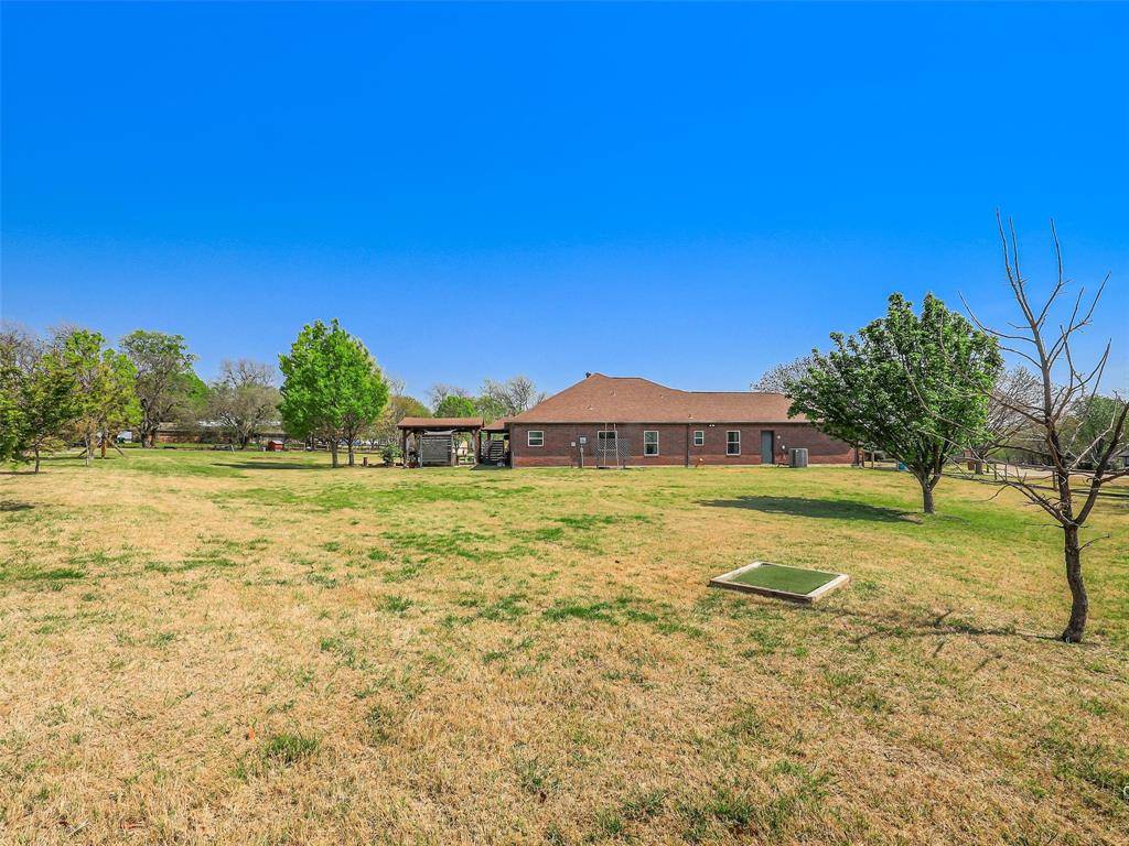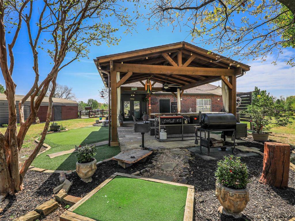 Discover the perfect blend of country charm and city convenience at 122 Collin Court in Prosper, TX. Situated on a rare 1-acre cul-de-sac lot in the desirable Collin Green community, this beautifully updated single-story home offers privacy, space, and modern upgrades—all within minutes of shopping, dining, and top-rated schools in Prosper ISD. This 3-bedroom, 2-bath home features approximately 2,053 square feet of thoughtfully designed living space with abundant natural light throughout. The fully updated kitchen (2018) is a standout, showcasing painted cabinetry, gorgeous granite countertops, stainless steel appliances, a single bowl stainless sink, under-cabinet lighting, recessed lighting, and upgraded tile—perfect for both everyday living and entertaining. Recent improvements provide peace of mind, including updated laminate flooring and carpet, vinyl windows throughout most of the home, a new air conditioning system (2024), and a water heater replaced in 2025. Recessed lighting enhances the kitchen, family room, hallway, and secondary bedrooms, creating a bright and modern feel throughout. Step outside to enjoy the beautiful covered patio overlooking the expansive backyard—ideal for relaxing or entertaining. The backyard features a putting and chipping green with two dedicated turf tee boxes at 25 and 65 yards, as well as a dedicated garden plot. With no HOA, you have the freedom to truly make this property your own—even bring your chickens! An additional 20x30 building with electricity offers excellent storage, workshop, or hobby space. With its generous lot size, modern updates, and prime location, this home offers a rare opportunity to enjoy the feel of country living while being close to everything Prosper and surrounding areas have to offer. Schedule your showing today! Virtual Walk Though Available