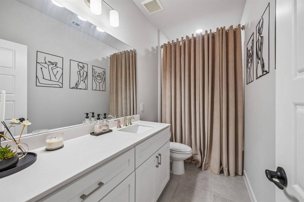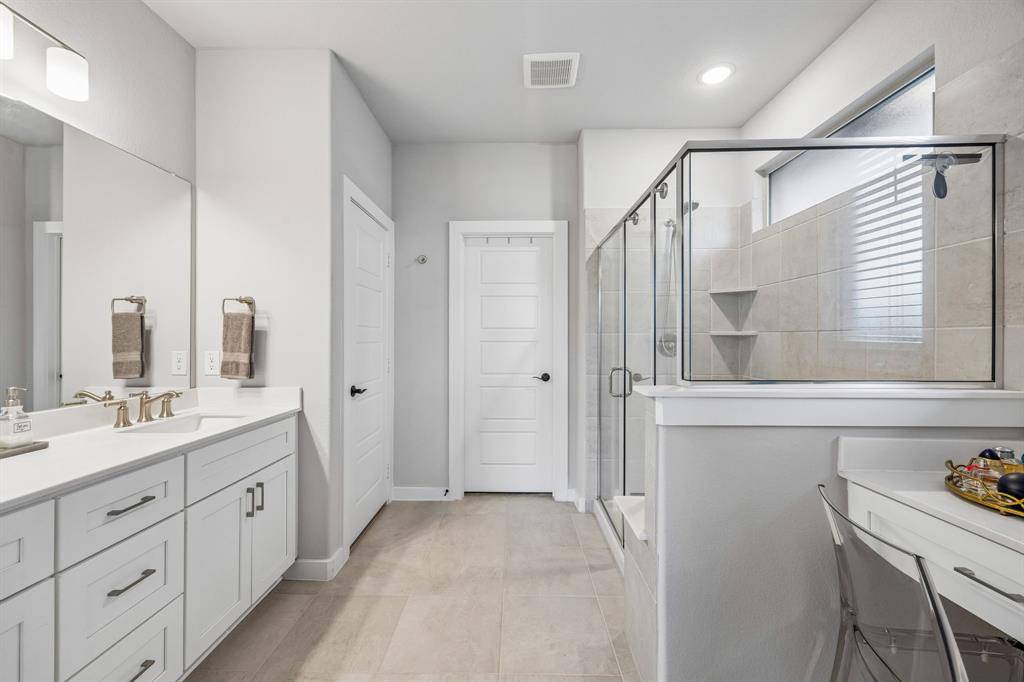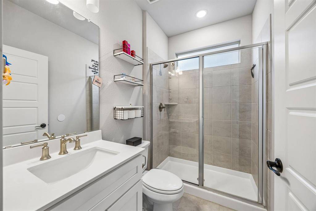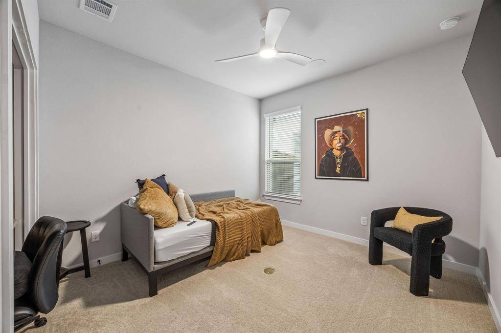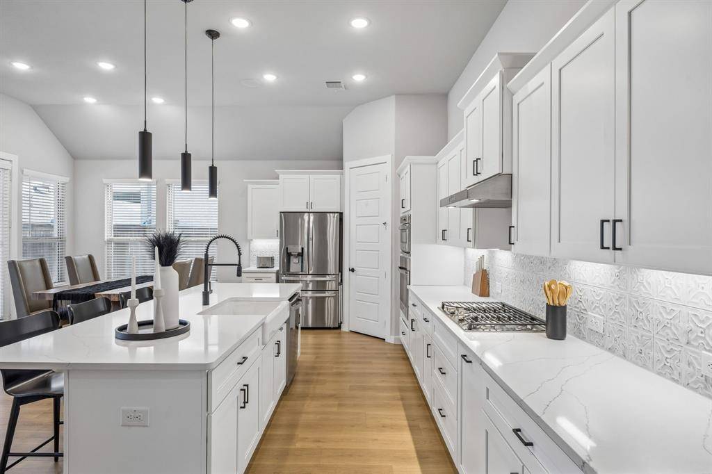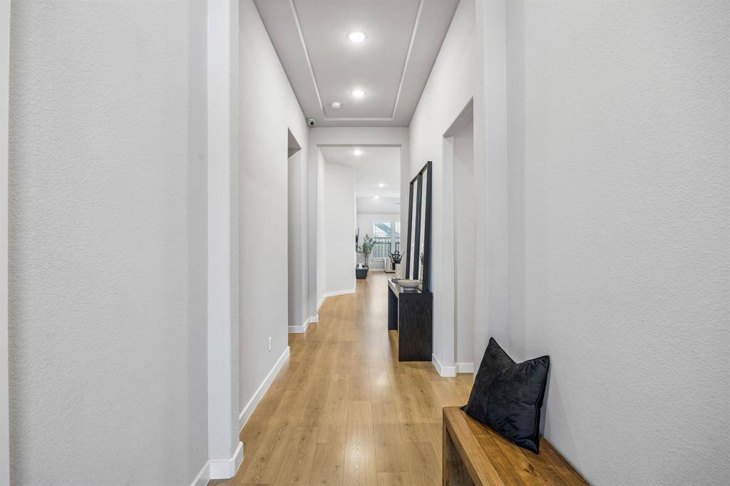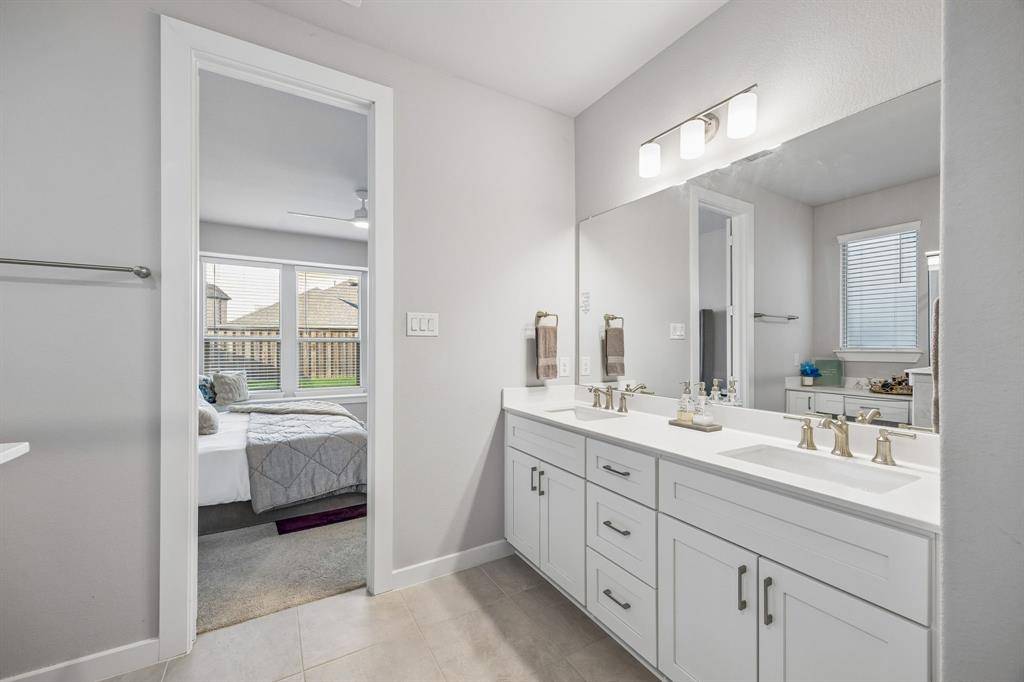 Set within one of the most sought-after master planned communities in the area, this home carries a quiet confidence you notice right away, crisp, polished, and maintained with a level of care you can feel. Light moves effortlessly through the space, giving it a clean, airy feel that still feels warm and grounded. The kitchen and living area open naturally to one another, creating a layout that feels both connected and easy to live in, with finishes that are current and cohesive. Three bedrooms, three full baths, and a true separate living suite that's hard to find, complete with its own living area, private bedroom, and full bath, giving guests or extended family a space that feels completely their own. One of the secondary bedrooms has been thoughtfully reimagined as an office with a custom built-in desk, while walk-in closets and consistent, neutral finishes keep everything feeling elevated and pulled together. Windows line the back of the home, bringing in soft natural light and enhancing the sense of space, with an extended concrete patio that creates a seamless transition outdoors. The home is wired for sound with speakers in most rooms and includes a whole home water filtration system, adding comfort and convenience in the details. Set within Light Farms, a resort-style community that truly feels different from the rest, just two blocks from one of the community pools, with access to pickleball and sport courts, a full gym, sand volleyball, stocked fishing ponds, a dog park, camping, and over 200 events each year that keep the neighborhood active and connected, with front yard maintenance included in the HOA. Golf cart-friendly streets make it easy to head to Frontier Park, grab coffee, or meet friends at the neighborhood restaurant, creating a lifestyle that feels easy, social, and genuinely fun to be part of, all just a short walk to Light Farms Elementary and the amenity center, and zoned to top-rated Prosper ISD.