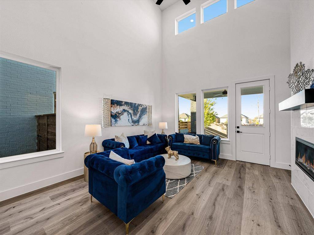 Model Home with most decor and furnishings included. Feel like a Royal in our Alexander floor plan. Step into the epitome of modern living with this brand-new Monarch Home, where architectural sophistication blends seamlessly with everyday comfort. This 4-bedroom, 3.5-bath masterpiece includes a spacious game room and a functional pocket office, offering versatility for both entertainment and work-from-home lifestyles. Designed for discerning tastes, the home boasts premium finishes throughout. The Chef-Inspired Kitchen is outfitted with a JennAir appliance package, including double ovens and a 5-burner gas cooktop, making it a culinary dream. Enjoy the elegant touch of quartz countertops, a pot filler, Blanco Silgranit sink, and soft-close cabinetry with upgraded hardware. A decorative backsplash adds a sleek, modern flair. Gather around the crystal-accented gas fireplace under the ambient glow of luxury Kichler lighting. The Karastan Cultivated wood flooring in common areas downstairs as well primary bedroom, combined with 8-foot doors and 12x24 sleek tile accents, creates a clean and contemporary vibe. The Resort-Worthy Primary Suite has a luxurious primary bath featuring floating cabinets, a large frameless glass shower, decorative tiles, framed mirrors, and quartz countertops with undermount sinks.