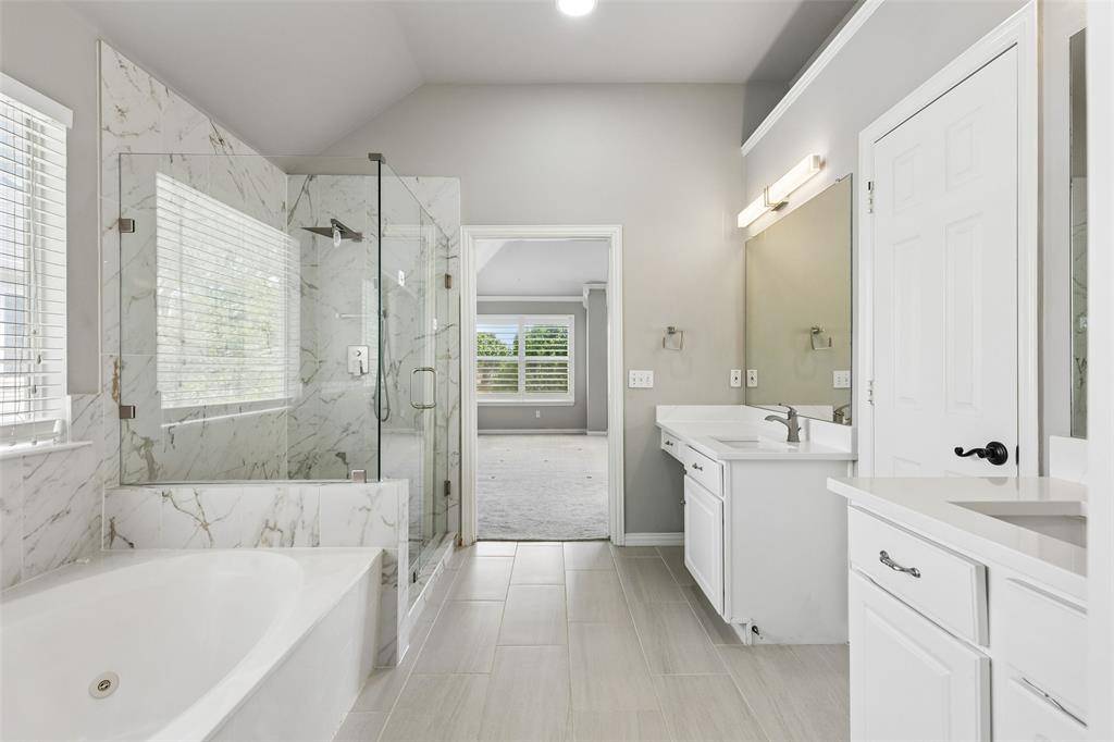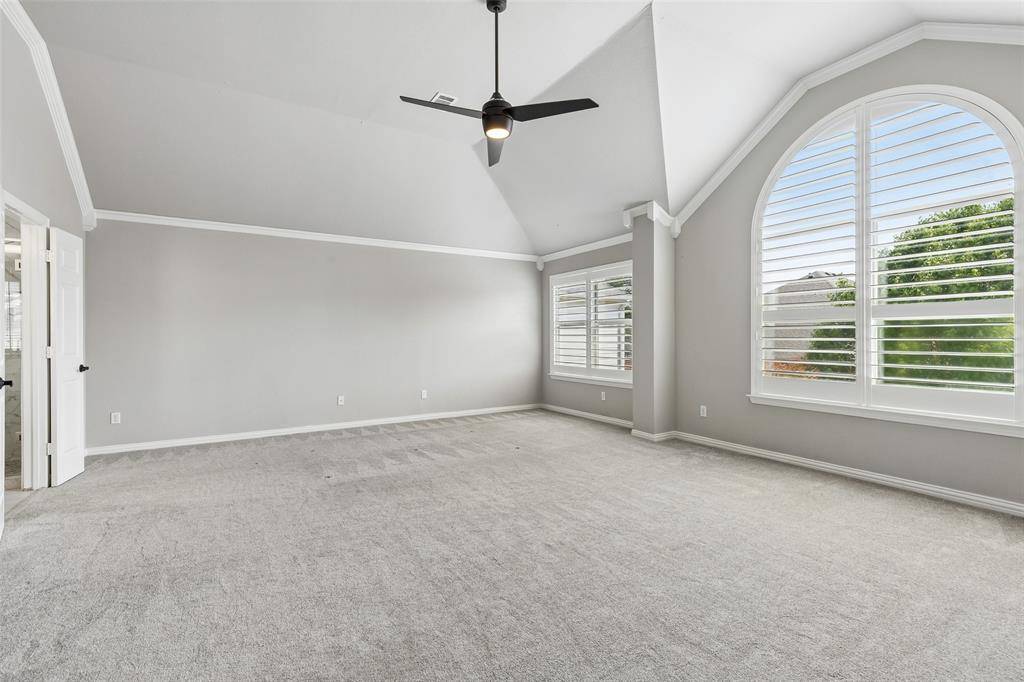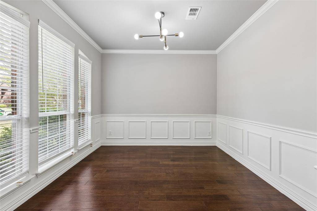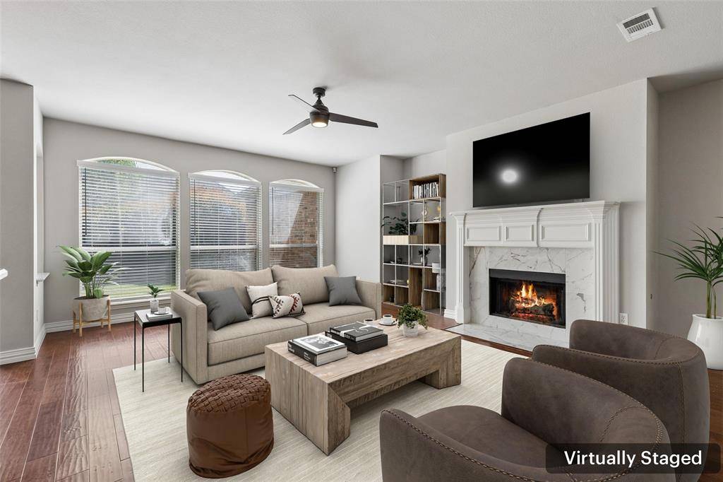 Beautifully updated North-facing 5 bedroom, 2.5 bath home in the highly sought-after Preston Hollow community, offering a blend of timeless design and modern comfort. Soaring 20-foot ceilings and abundant natural light create a bright, open atmosphere, enhanced by rich hardwood flooring, plush carpet, extensive crown molding, and 5-inch baseboards throughout. The welcoming main living area features a striking fireplace and a wall of windows, providing a warm and inviting setting for everyday living and gatherings. Elegant formal living and dining rooms offer additional spaces for entertaining or quiet enjoyment. The thoughtfully designed kitchen is both functional and stylish, showcasing solid cherry cabinetry, granite countertops, built-in appliances, a center island, and a breakfast bar. A bright breakfast nook provides a comfortable space for casual dining. Multiple living areas add versatility, including a spacious downstairs bonus room ideal for recreation, hobbies, or media use, along with a dedicated study suited for remote work or focused tasks. The layout offers a seamless flow with generous room sizes throughout. The expansive primary suite provides a relaxing retreat, complete with a sitting area and a spa-inspired ensuite bath featuring dual sinks, separate vanities, a soaking tub, separate shower, and a walk-in closet. Enjoy a private backyard featuring a patio, offering a comfortable outdoor space for relaxing or entertaining. Conveniently located near shopping, dining, and major thoroughfares, and within highly regarded Frisco ISD, this residence combines comfort, functionality, and enduring appeal. 3D tour online.