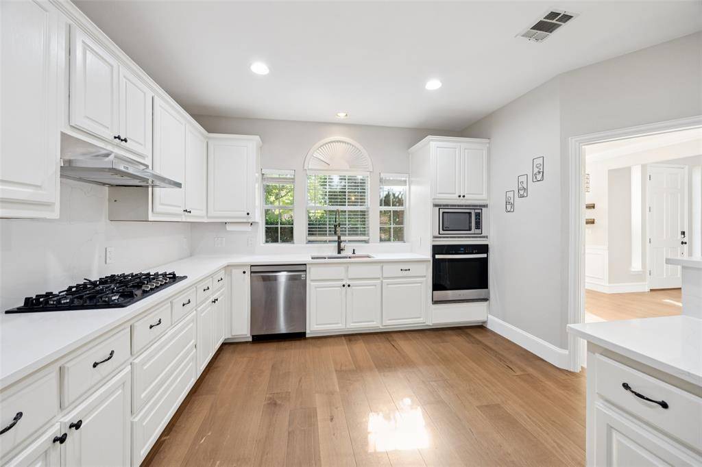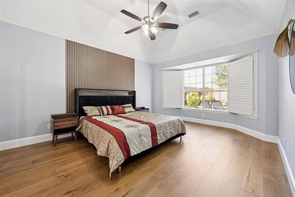 Must see in person! Beautifully updated and move-in ready, this bright, open floor plan Plano home sits within a highly regarded top-rated school district and a friendly, community. Inside, warm wood floors, vaulted-tray ceilings, and a serene primary suite with a designer accent wall set the tone; the renovated kitchen showcases refreshed countertops, new faucets, and new appliances, while the baths feature new flooring, luxury shower-head fixtures, LED-lit mirrors, and a remodeled guest bath. Comfort and savings include a smart thermostat that optimizes HVAC runtime, and smart weather-based irrigation. Brand new water heaters. Step outside to your private oasis with a sparkling pool, spa, waterfalls, pergola, and outdoor kitchen, behind full-privacy fencing surrounded by mature Japanese maple, oaks, and flowering trees. Ultra-convenient location, just 5–15 minutes to H-E-B, Whole Foods, Trader Joe's, Costco, The Shops at Legacy, Legacy West, Stonebriar Centre, parks-trails, Topgolf, and more, plus about 20 minutes to the planned Universal Kids Resort. 3D Tour online