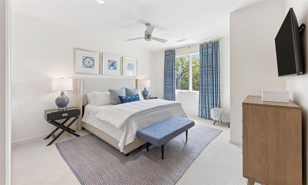 The second level offers well-appointed secondary bedrooms with ensuite baths and a conveniently located laundry room. The primary suite is privately positioned, creating a peaceful retreat.