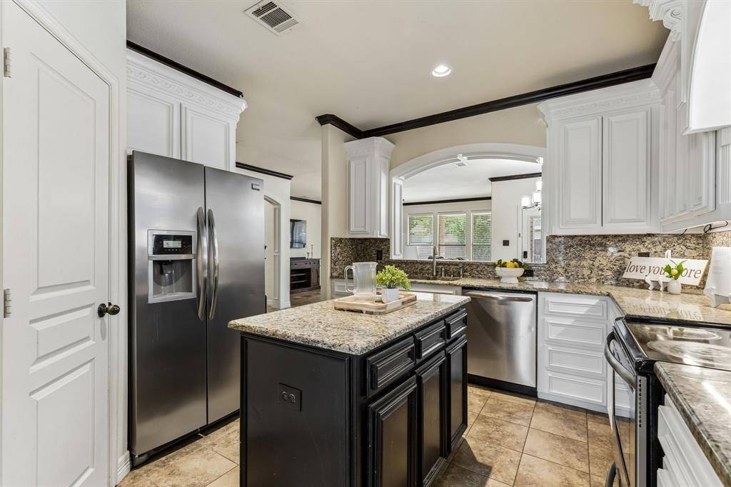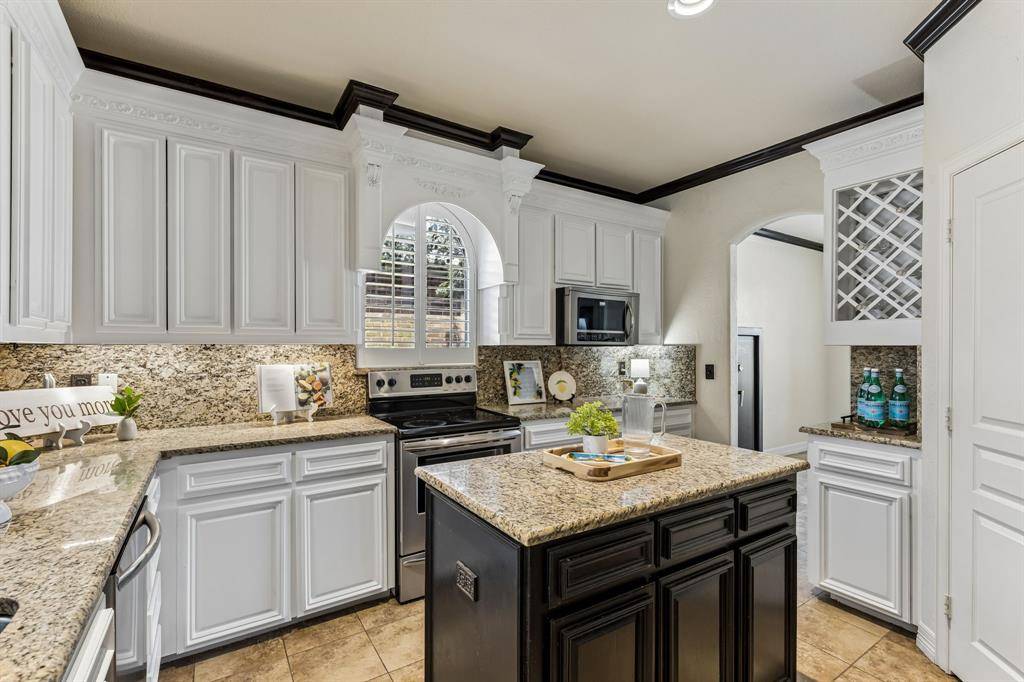 Designed with comfort and versatility in mind, the home offers space for every lifestyle. The formal dining room, currently styled as a study, sits just off the entry. The beautifully appointed kitchen features freshly painted cabinetry, granite countertops, large island, stainless steel appliances, walk-in pantry, and a built-in wine rack, all overlooking the living area and spacious breakfast nook with bar seating.