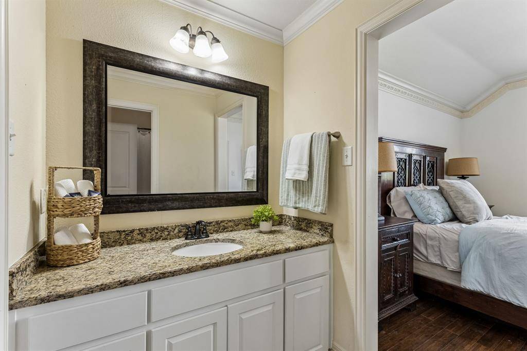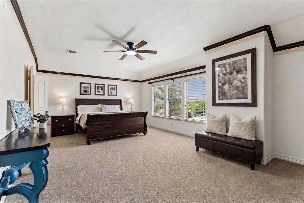 Upstairs, are three secondary bedrooms, each with walk-in closets, along with thoughtfully designed Jack-and-Jill bath. A generously sized media room offers additional space for relaxation or entertainment. The primary suite is a true retreat, featuring a sitting area and a spa-inspired ensuite with split vanities and a separate shower.