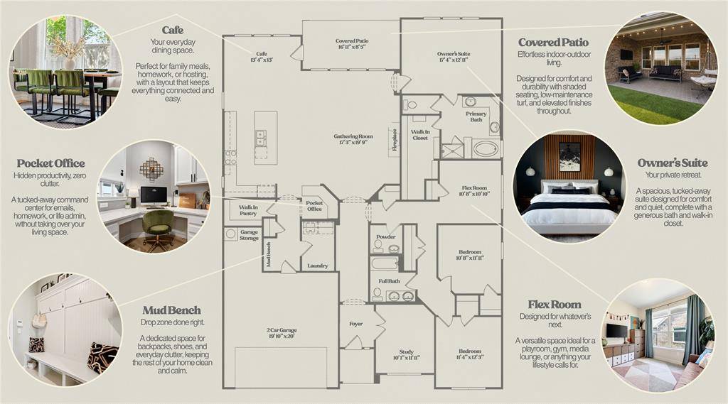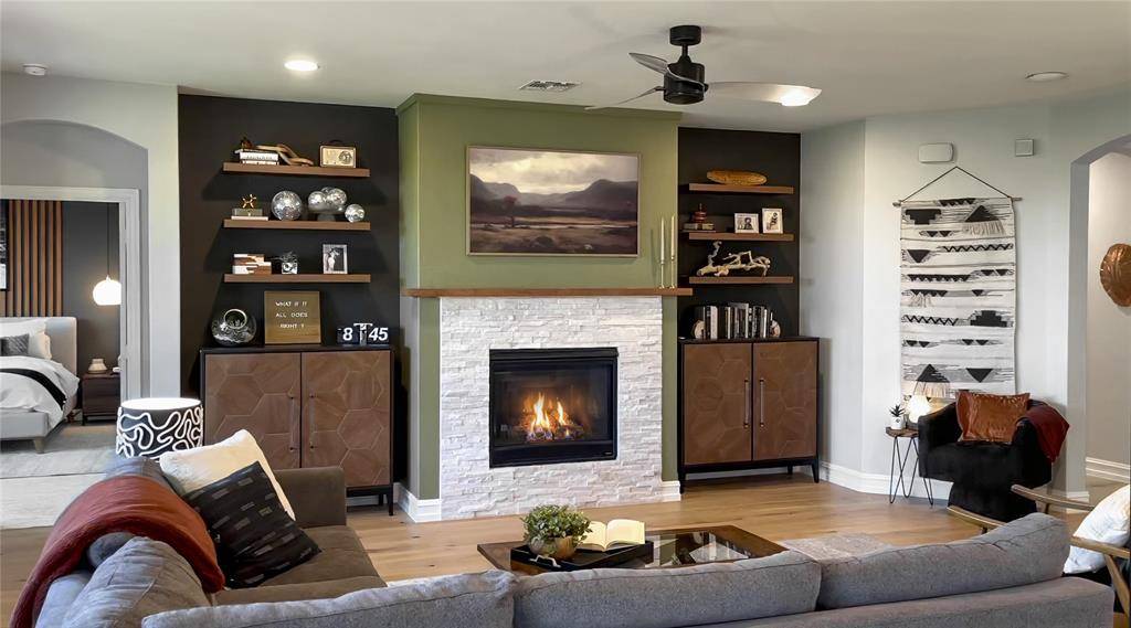 With 3 bedrooms, a dedicated office, a unique office nook, and a playroom, this home is as functional as it is beautiful. The stone-stacked fireplace anchors the living area, creating a cozy spot to unwind. Step out back to your private oasis, where the entire yard is finished with lush turf, and enjoy evenings on the covered patio. Out front, the charming rocking chair porch invites you to sit and savor the neighborhood's friendly vibe.