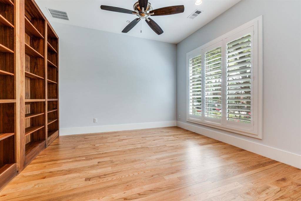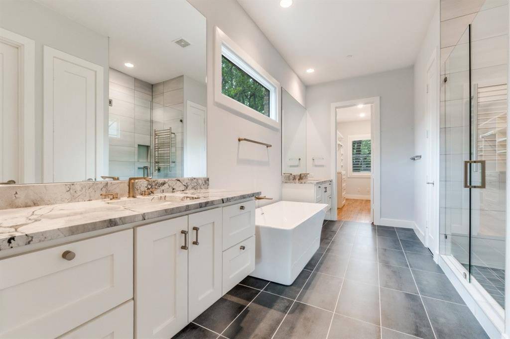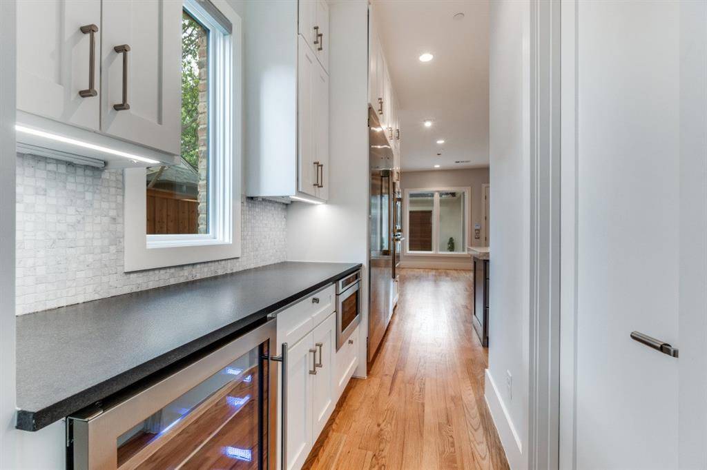 Built in 2023 by McKinley Built Homes, this elegant West Highland Park residence offers 3,253 square feet of refined living space with access to Highland Park police, fire, and town services. The home welcomes you with a dramatic glass entry accented by gas lanterns, leading into a traditional center hall layout with formal dining and a dedicated study. Designed for both everyday living and entertaining, the kitchen is equipped with premium stainless steel appliances, double ovens, and an expansive marble island. The adjoining butler's pantry enhances functionality with a coffee station, wine fridge, microwave, and generous storage. The main living area features a statement fireplace and expansive windows that fill the space with natural light while overlooking the covered patio and backyard. The primary suite on the first floor offers a private escape with a luxurious bath, including a soaking tub, oversized shower, heated towel feature, and a custom walk-in closet. A nearby laundry room adds convenience. The second level provides two large ensuite bedrooms, a flexible living area suited for media or recreation, and an additional room perfect for a workout space or office. Additional amenities include extensive hardwood flooring, a backup generator, and a two-car garage with epoxy-finished floors, alley access, and an electric gate. The garage also includes two climate-controlled bonus spaces, plus a covered passage connecting it to the main home.