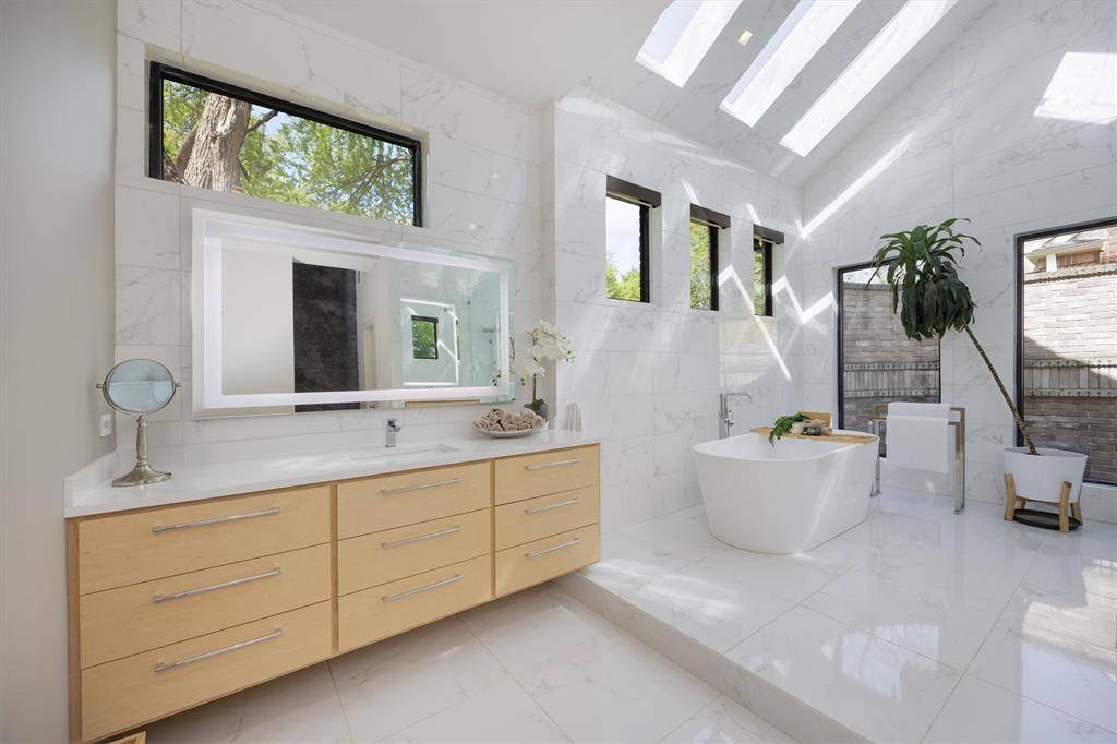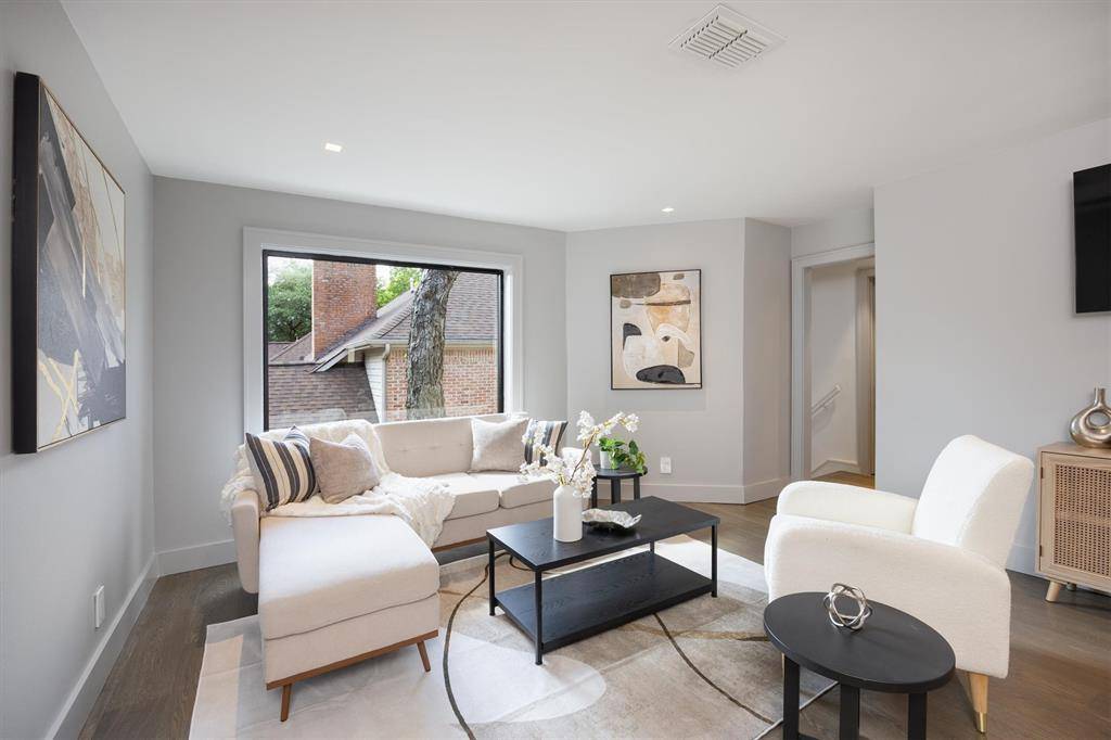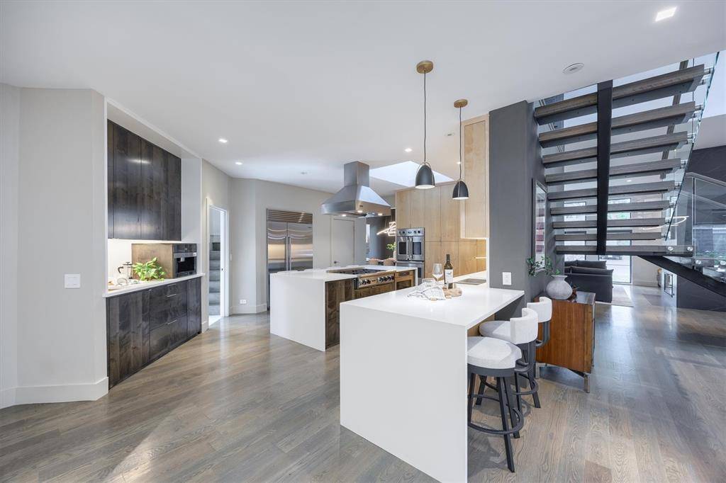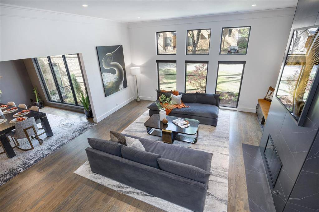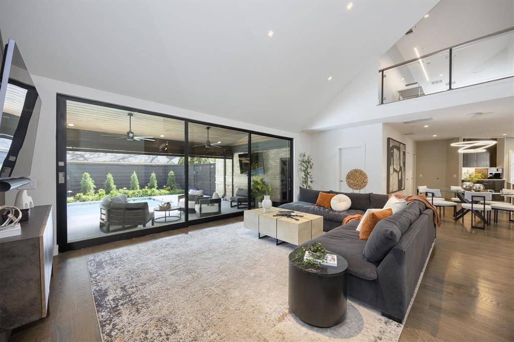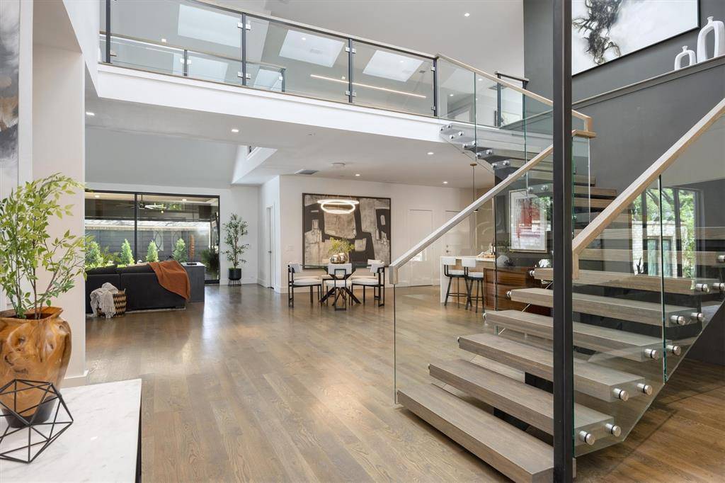 Fully reimagined and taken down to the studs, this home blends modern design with thoughtful functionality and exceptional craftsmanship. Walls and ceilings were opened, floors leveled, and steel beams installed to create a dramatic, open-concept layout, just begging to host parties and entertain guests. From the grand entrance, you'll notice the striking open staircase, Italian tile accent walls, and the beautiful seamless flooring throughout, all complemented by Level 4 wall finishes, integrated art lighting, and a discreet, high-efficiency cooling system.