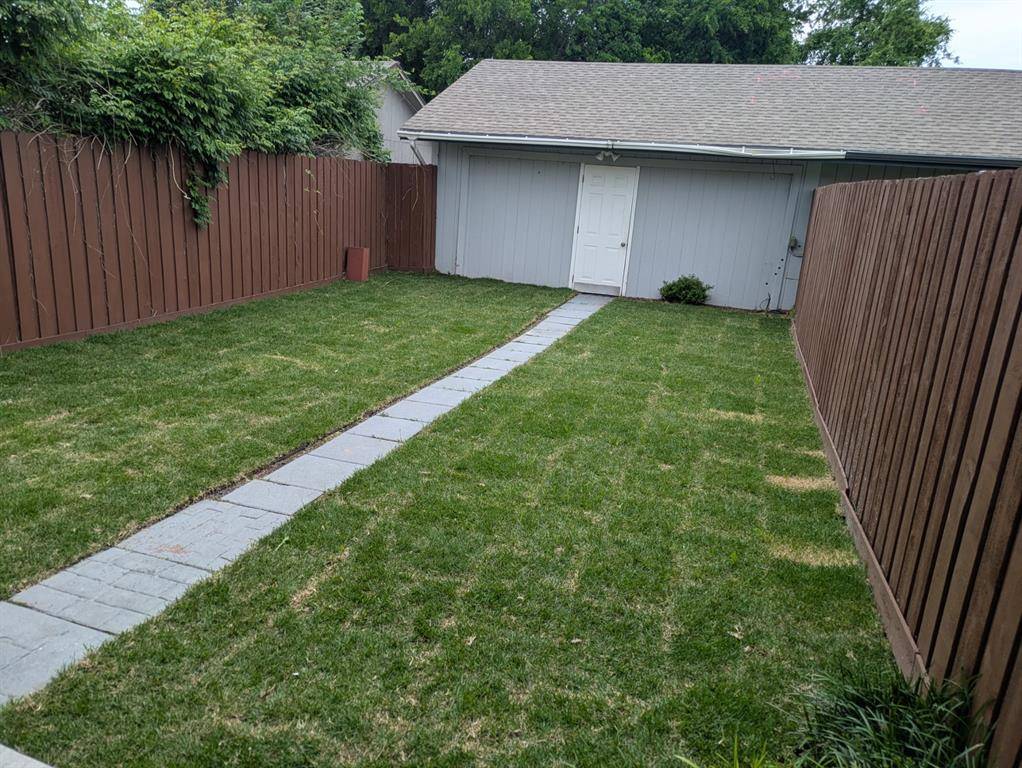 Charming and low-maintenance 2-story garden home in the heart of Flower Mound! Cute end-unit tucked away at the back of a quiet cul-de-sac, offering added privacy and minimal traffic. This 2-bedroom, 1.5-bath home offers 948 sq ft of thoughtfully designed living space, perfect for comfortable everyday living. The kitchen features granite countertops, breakfast bar, an eat-in dining area, fridge, KitchenAid Range, all flowing seamlessly into the inviting living room highlighted by tall ceilings and a wood-burning fireplace. New windows were recently installed in the living area. Step outside to enjoy a private, fenced backyard flush with new sod—ideal for relaxing or a small pet. The detached 2-car garage with epoxy floors includes additional storage space, providing both convenience and functionality. Located in a desirable area, within walking distance of Timbercreek Elementary, multiple parks, walking trails, Parker Square, shopping, dining, DFW Airport, and major commuter routes, this home is a great opportunity for first-time buyers, downsizers, or investors. Washer and dryer included.