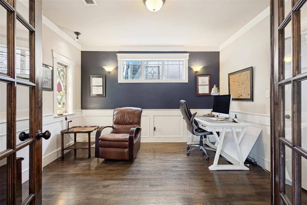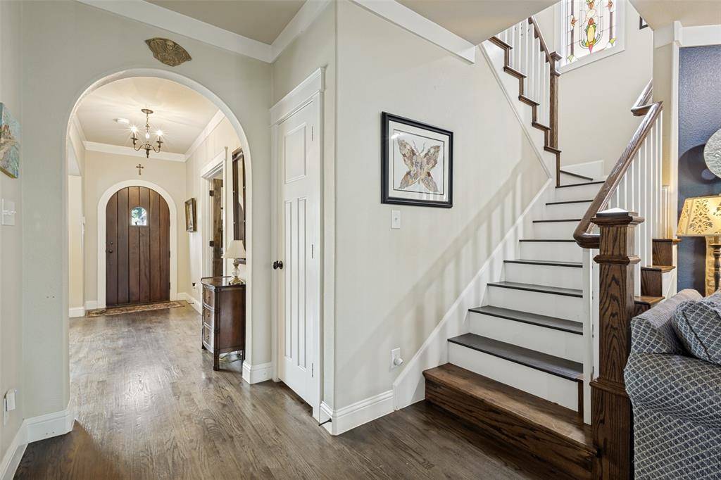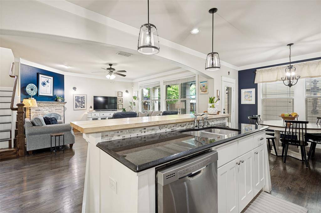 Nestled in the heart of historic McKinney, 508B N Tennessee is a storybook Tudor brick home that captures timeless charm with its striking red roof and enchanting architectural details. From the moment you arrive, you'll be drawn in by its character, warmth, and inviting presence. Inside, the home offers a thoughtfully designed open floor plan, perfect for both everyday living and entertaining. The spacious family room with beautiful hardwood floors, centers around a cozy fireplace, creating an ideal gathering space, while seamlessly flowing into the dining area and light-filled kitchen. The kitchen features a gas range, beautiful granite countertops, and ample cabinetry, making it as functional as it is stylish. An office on the first floor provides the perfect space for working from home or a quiet retreat. Throughout the home, stained glass accents add a touch of artistry and historic charm, creating a unique and memorable ambiance. Upstairs, the primary ensuite is a true sanctuary, complete with a sitting area, dual sinks, and a generously sized closet. Two additional bedrooms offer comfort and flexibility for family or guests. Step outside to your own private courtyard, shaded by mature trees~an idyllic setting for morning coffee or unwinding in the evening with a glass of sweet tea. The two-car garage adds convenience, while the location is simply unmatched. New roof and new water heater-2025. Just a short stroll down Tennessee Street brings you to the vibrant McKinney Square, where dining, shopping, and community events await. 508B N Tennessee is more than a home~it's a lifestyle, offering charm, comfort, and connection in one of McKinney's most beloved historic neighborhoods.