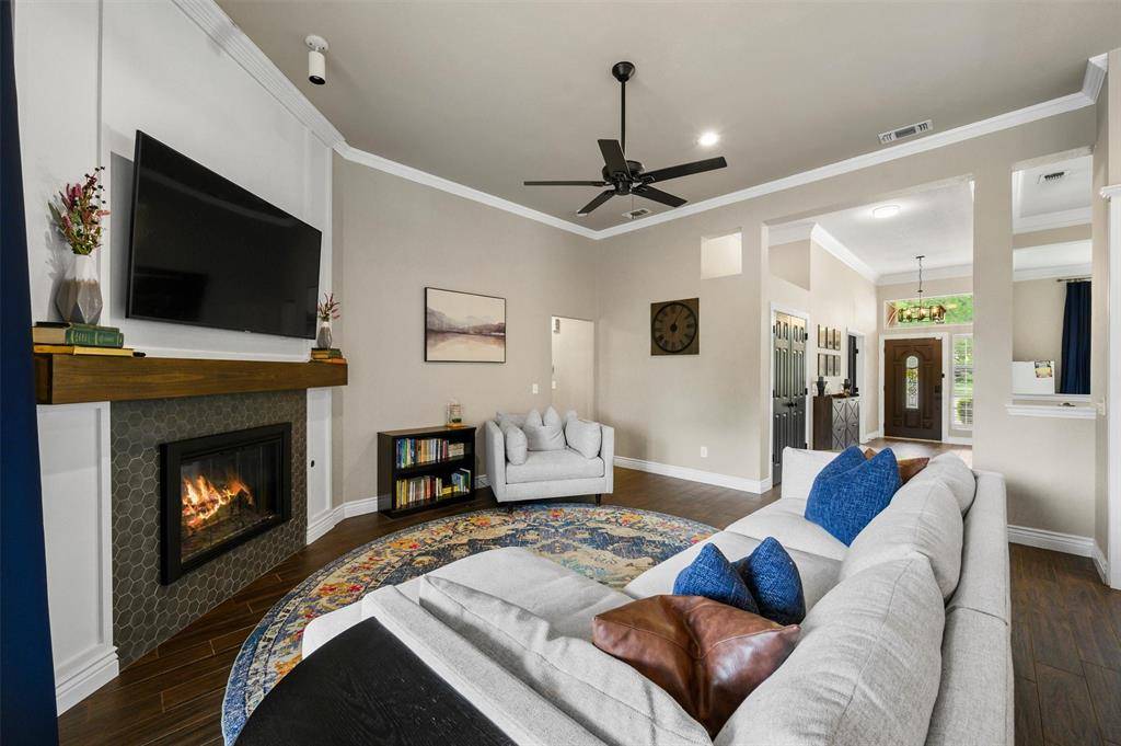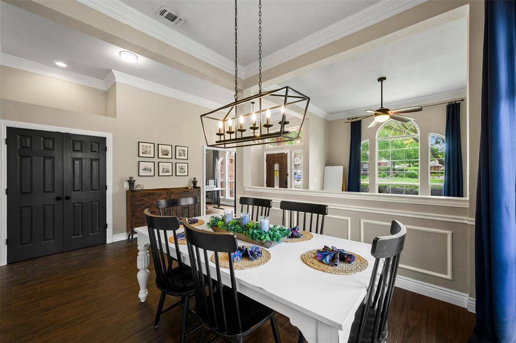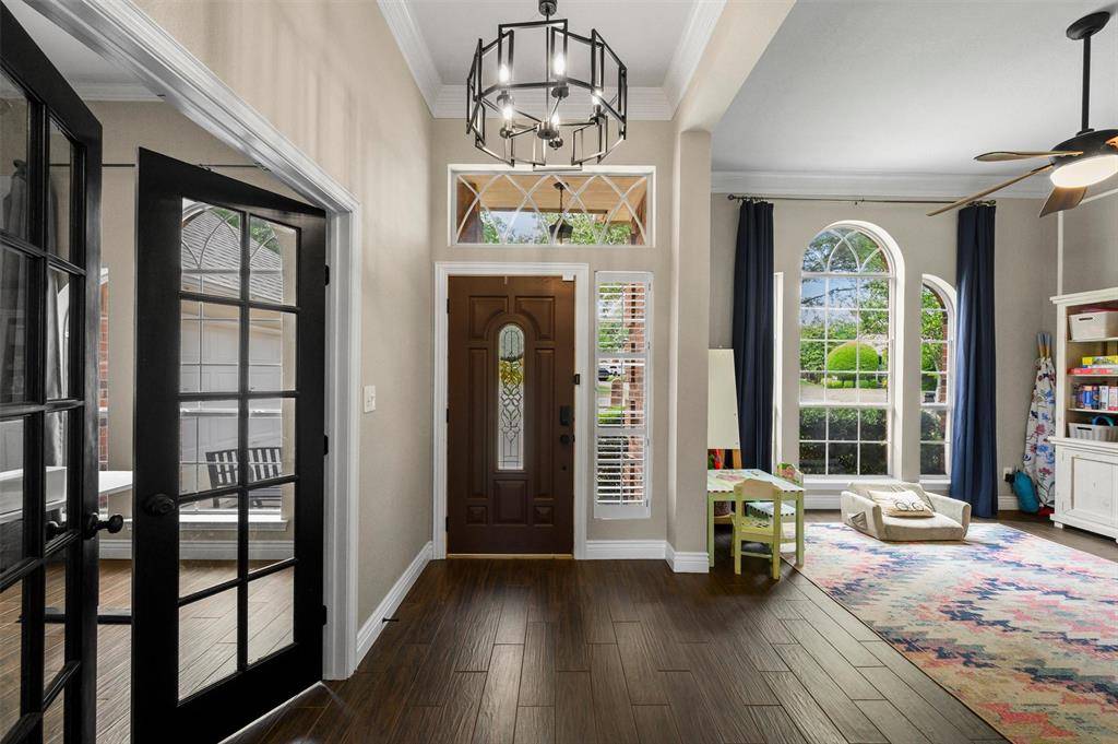 Welcome to this spacious and thoughtfully updated one-story home nestled in the desirable Creek Crossing community of McKinney. From the moment you step inside, the expansive entryway sets the stage for the elegant architectural details and inviting atmosphere found throughout the home.