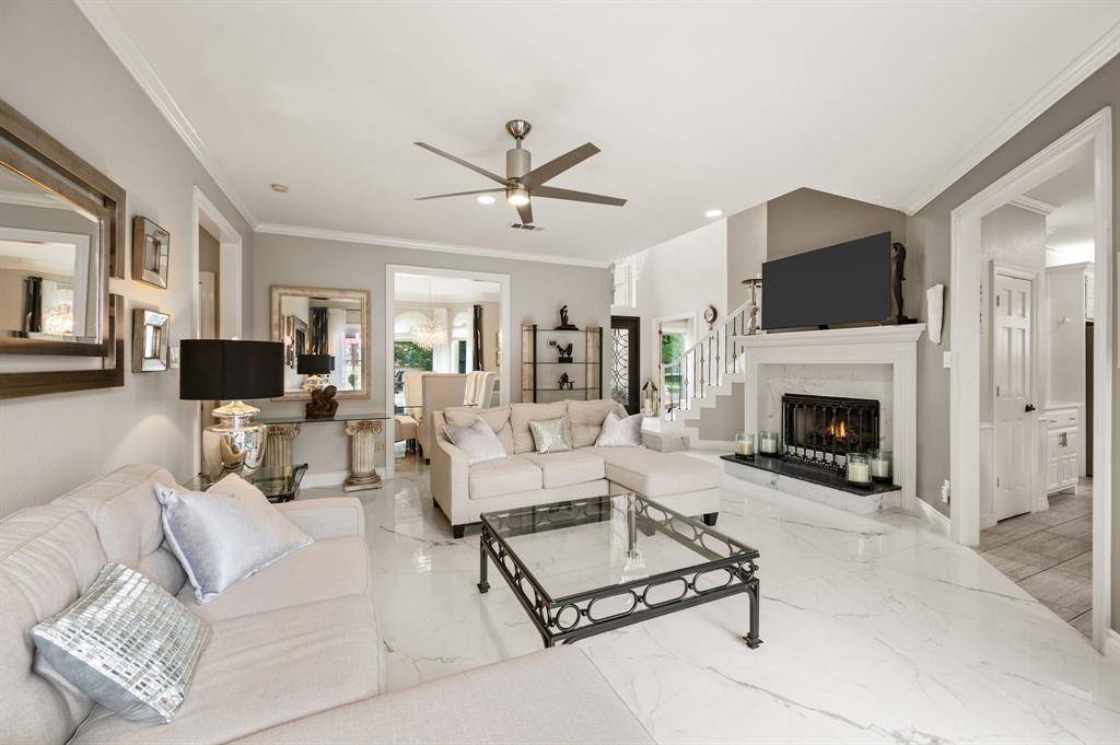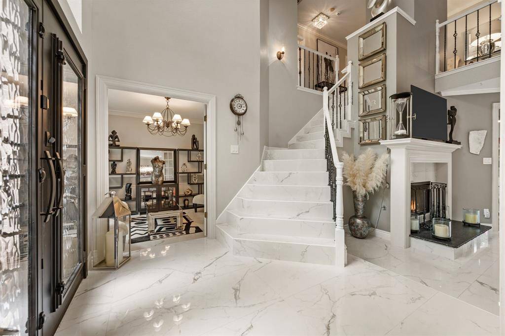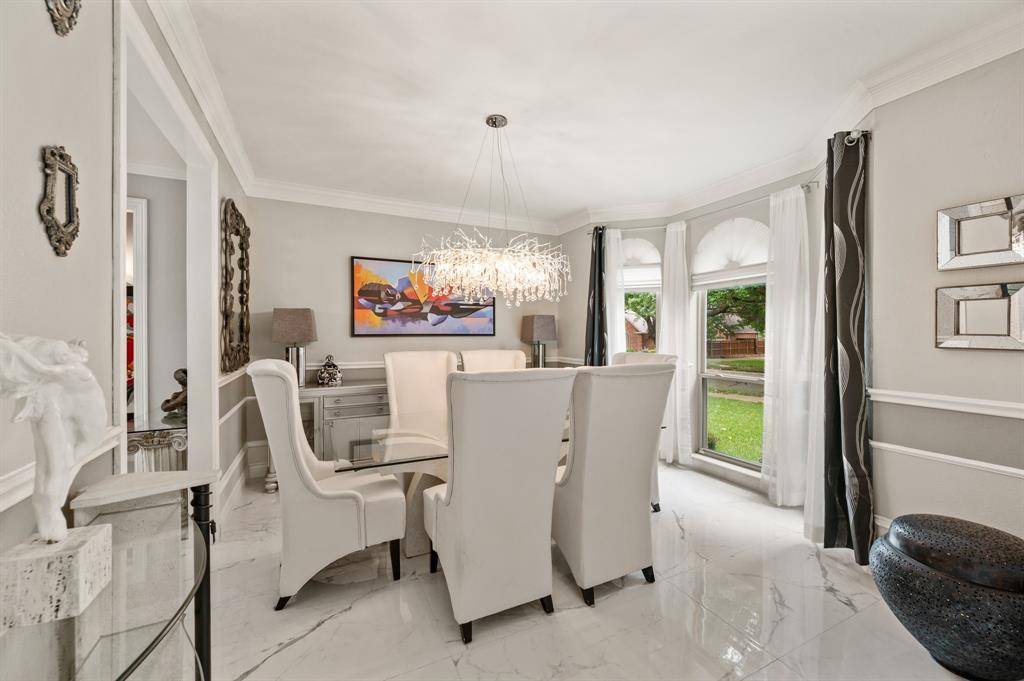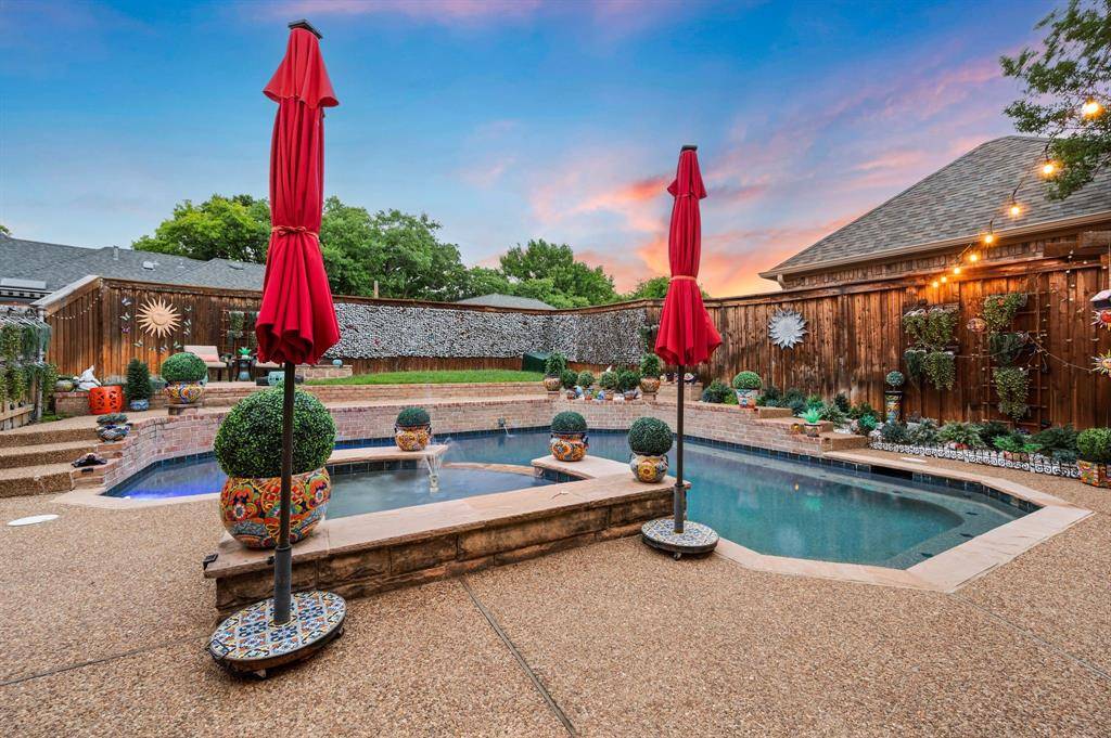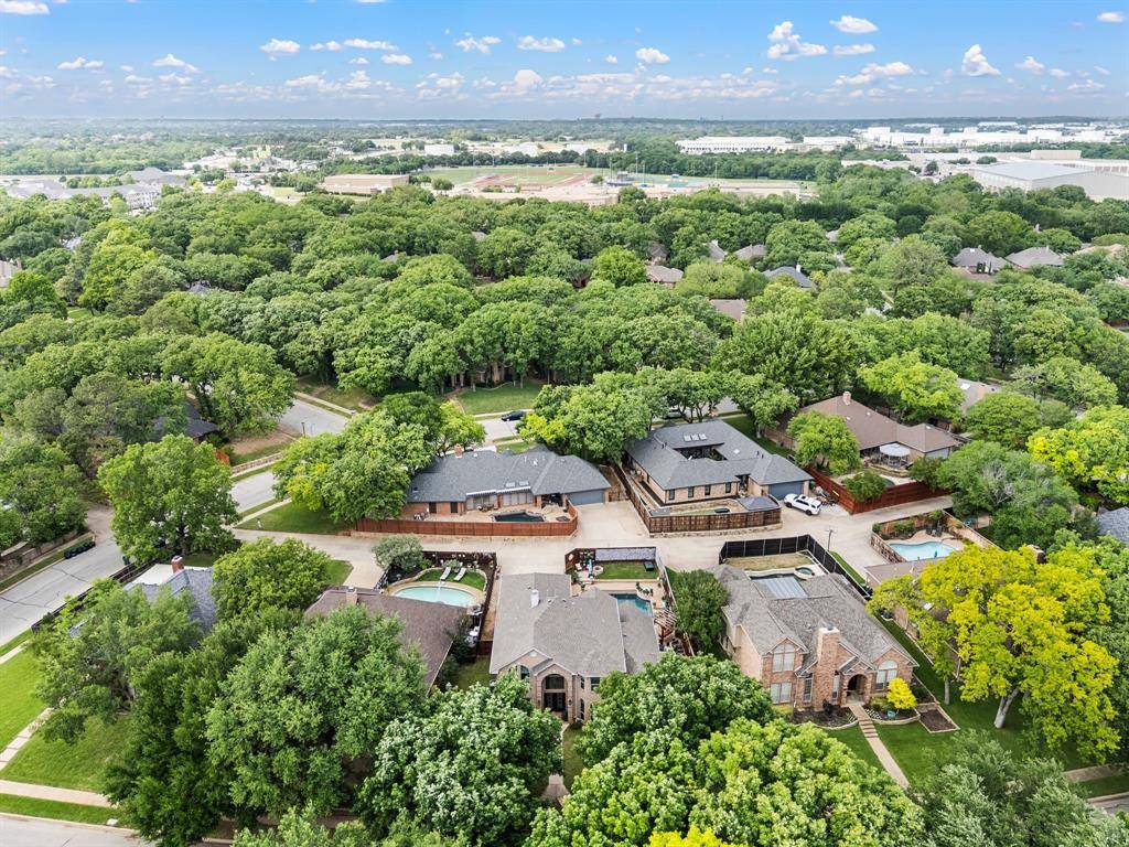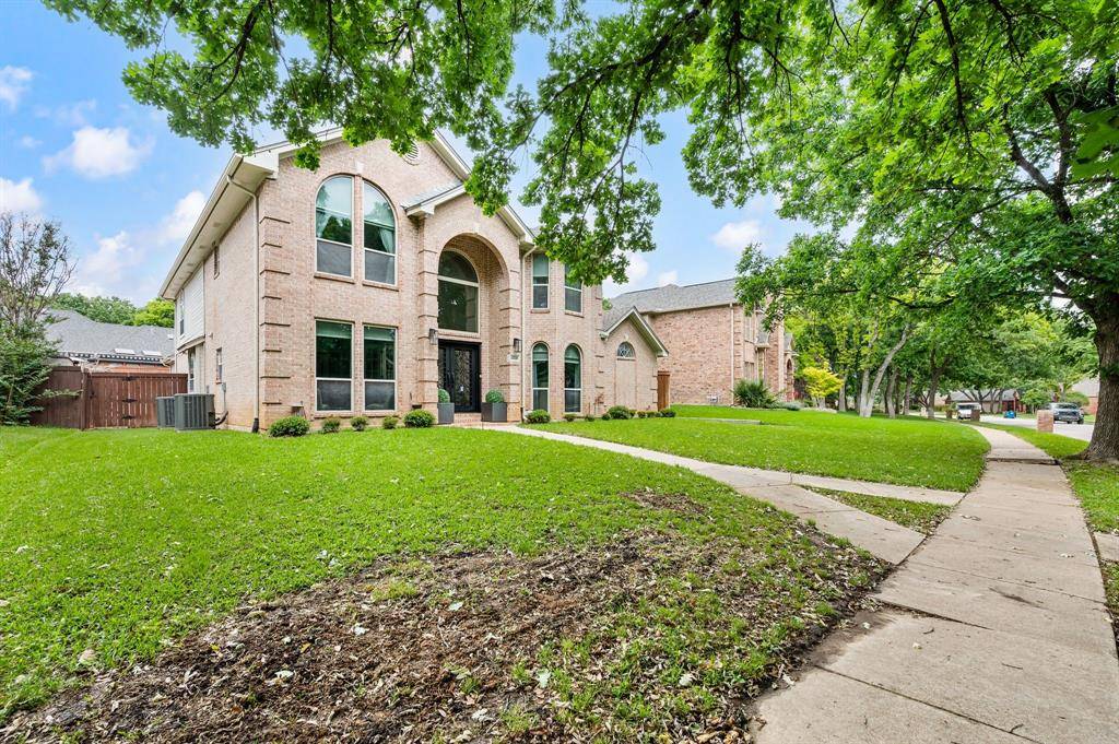 Fabulous location off Pool Road in the highly sought-after, tree-lined neighborhood of Creekwood West! Ideally situated near Parr Park and the Cotton Belt Trails, this home offers easy access to scenic walking and biking paths, playgrounds, and top-rated elementary, middle, and high schools just minutes away. This beautifully updated home features 4 bedrooms, 3.5 baths, and a spacious game room with a functional, open layout ideal for everyday living and entertaining. Recent upgrades include an updated front door and new flooring throughout the primary bedroom, dining room, foyer, family room, living room, staircase, and upstairs hallway. The kitchen is equipped with quartz countertops, an updated backsplash, double ovens, and resurfaced cabinets in both the kitchen and laundry areas, offering a clean and modern finish. Designer lighting updates include a crystal chandelier in the foyer and dining room, an iron chandelier in the living room, and updated fixtures throughout the upper hallway and bathrooms. Ceiling fans have been added in the primary bedroom and kitchen. The primary suite is located on the first floor for privacy, featuring updated lighting and an electric towel warmer in the bath. Upstairs offers three additional bedrooms, two full baths, and a game room. The Jack & Jill bath includes a sliding shower door, updated lighting, and an anti-fog LED Bluetooth mirror. Additional highlights include a 120” HD projector screen, dual Trane HVAC systems (May 2022, 60,000 BTU), and a 50-gallon Rheem natural gas water heater (Jan 2023). Outdoor living features a private backyard retreat with a sparkling pool and spa resurfaced in March 2022 with updated filtration, plus a fire pit and ample space for entertaining or relaxing in a peaceful setting. A rare opportunity in an unbeatable location, this home is move-in ready and a must-see!